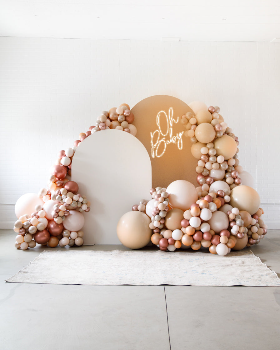 Stand out in style with this panel and balloon garland design. This includes a 7ft panel backdrop with organic balloon garland to match. Add foil accents to make your photo backdrop stand out even more!