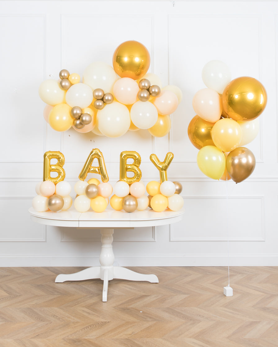 Add plenty of fun to your celebration with this stunning decor. This includes a baby balloon table centerpiece, 3ft colorful balloon arch and a balloon bouquet. Installation not required so you can create an instant party anywhere.