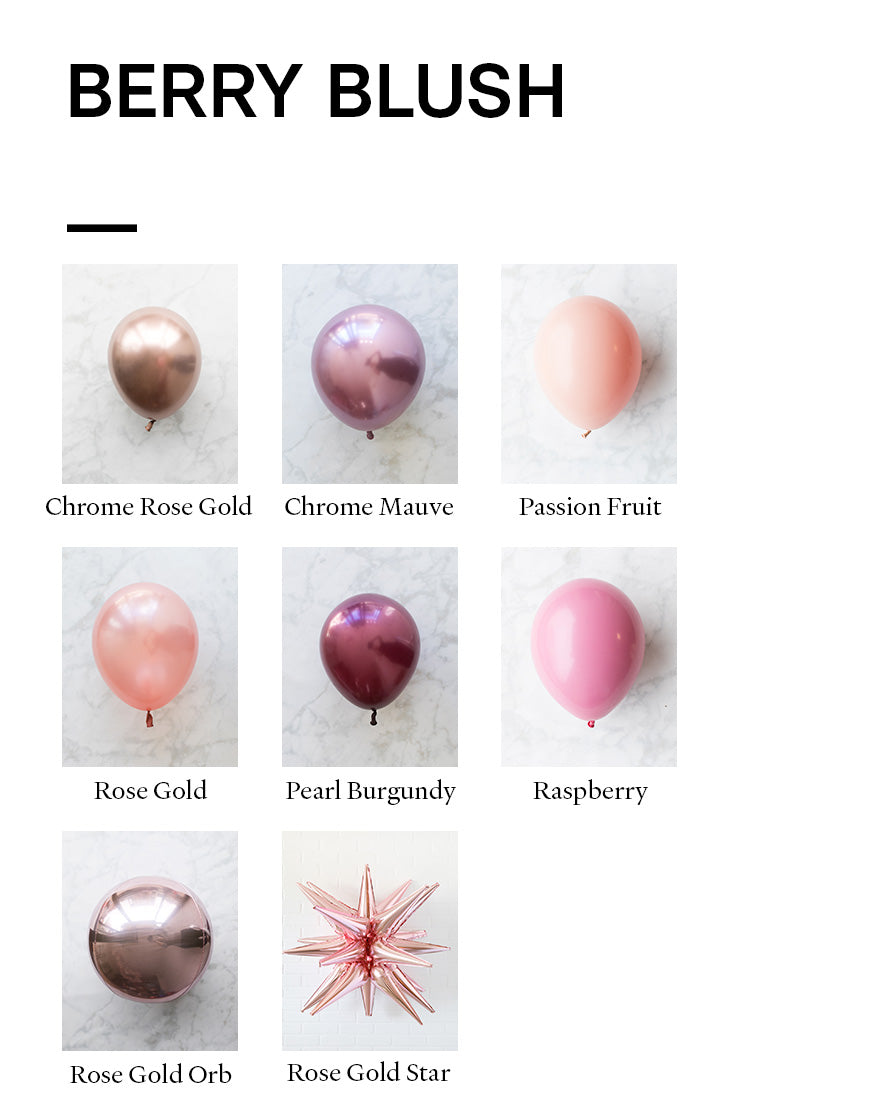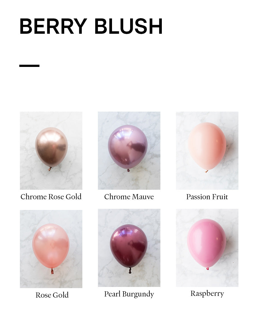 Balloon - pearl burgundy, chrome rose gold, chrome mauve, rose gold, passion fruit, raspberry