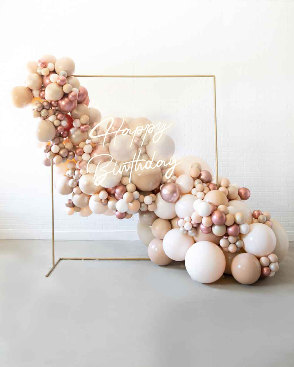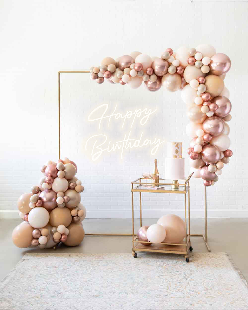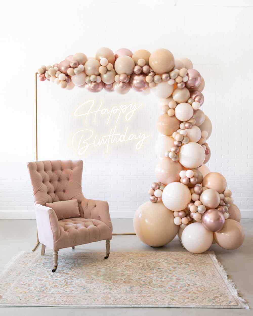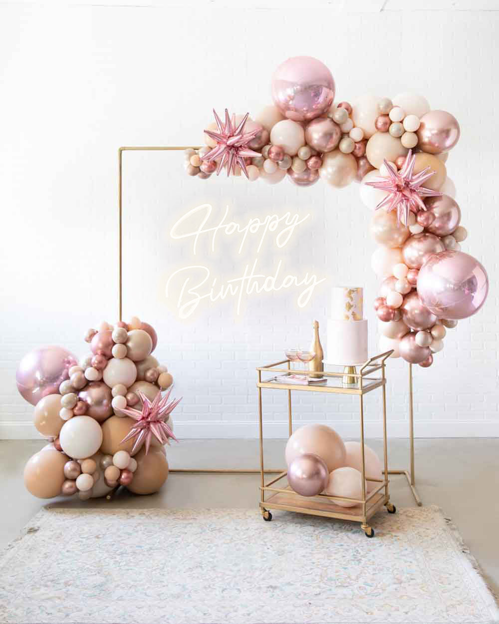 Light up your event with the ultimate backdrop! This balloon garland design includes balloons along a circular frame, as well as a beautiful neon sign to highlight your occasion in style! This works perfectly in any space and will wow your guests!