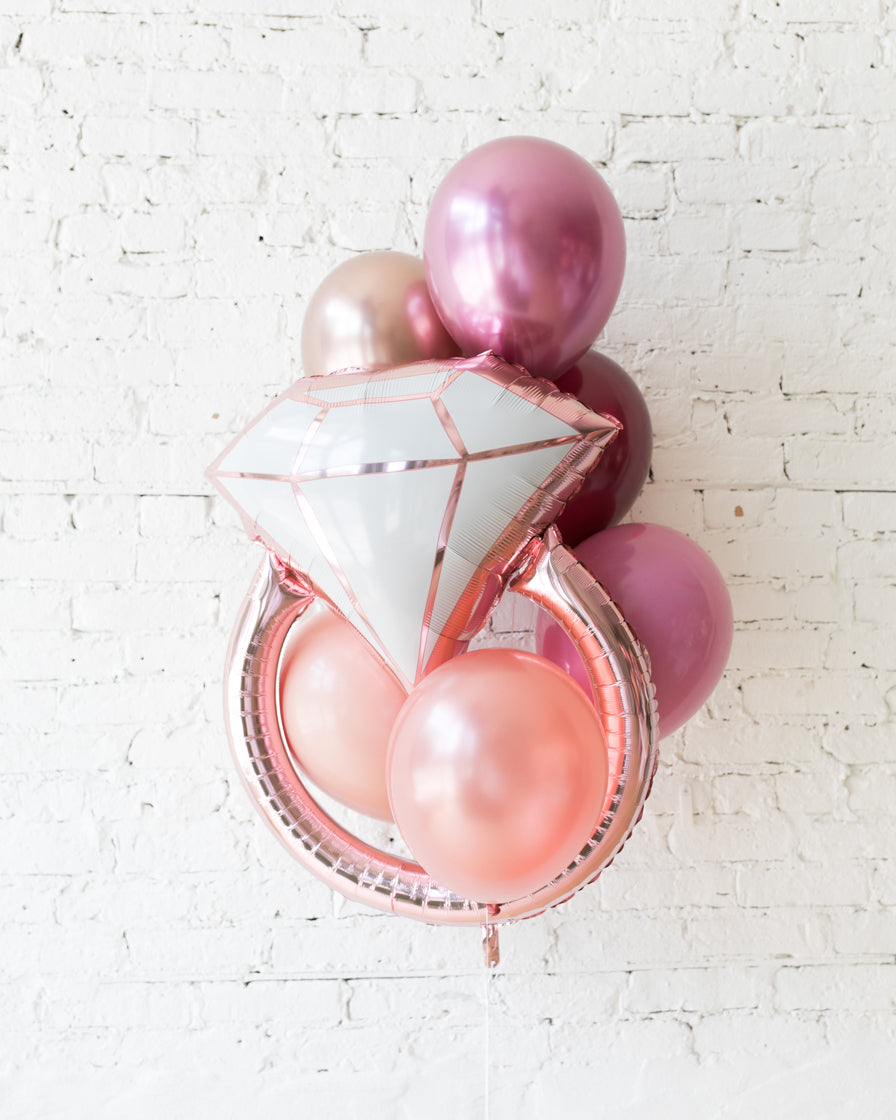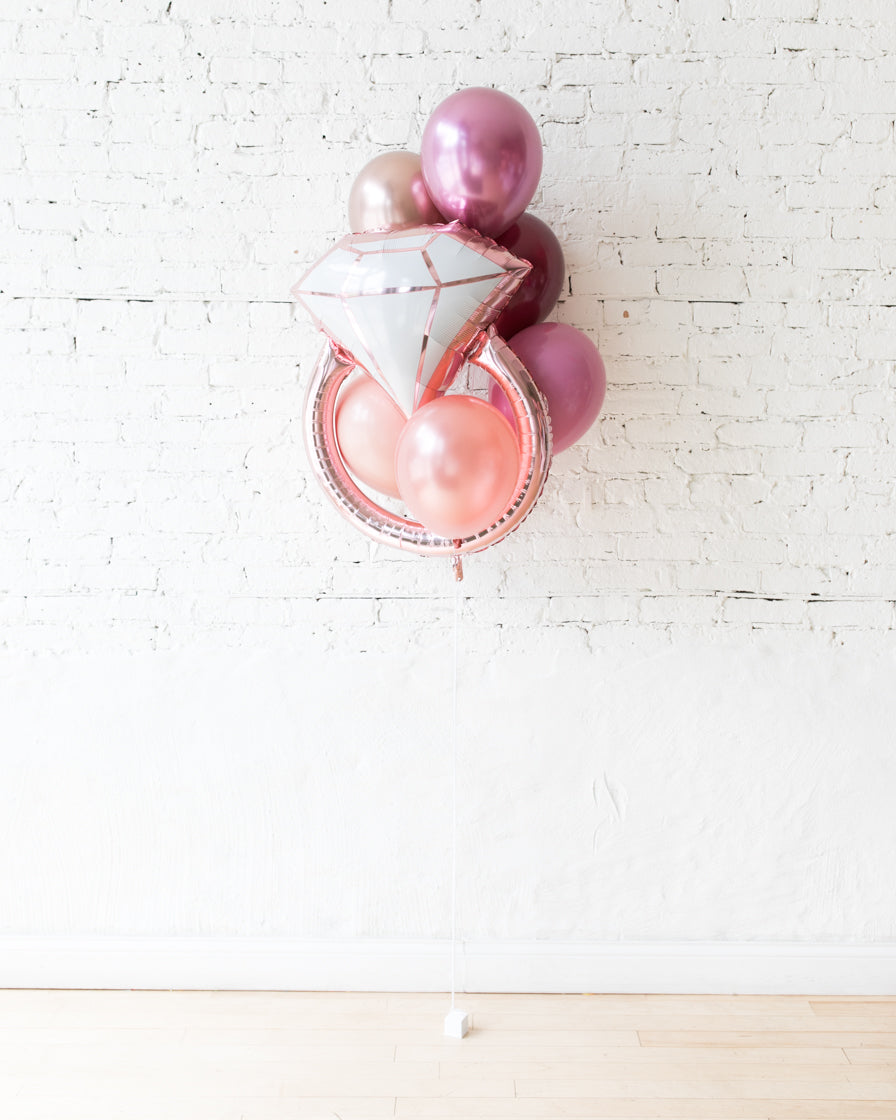 Berry Blush - Diamond Ring Foil and 11in Balloons - bouquet of 7