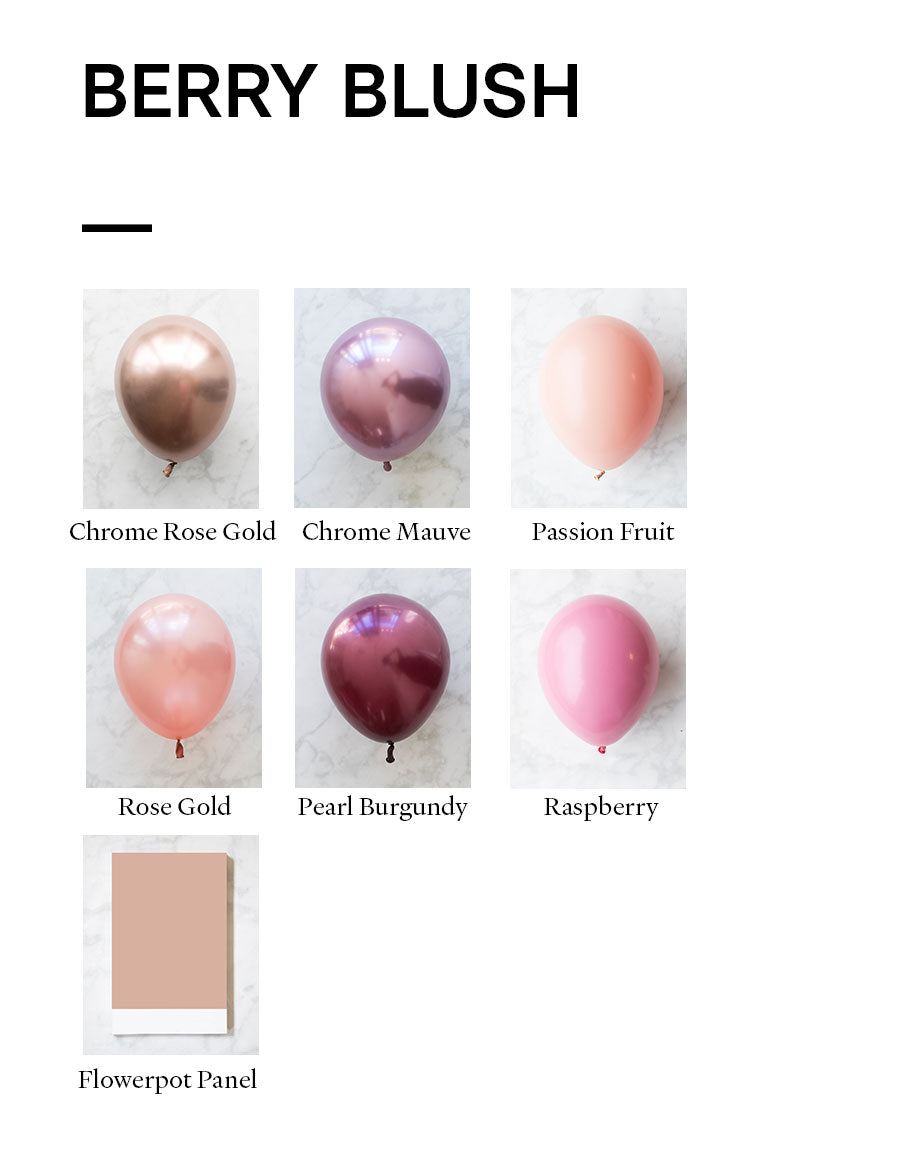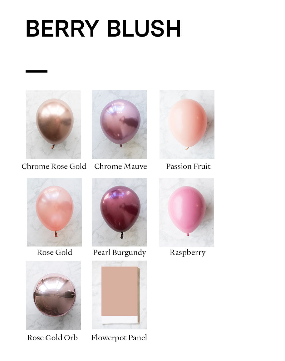 Balloon - pearl burgundy, chrome rose gold, chrome mauve, rose gold, passion fruit, raspberry