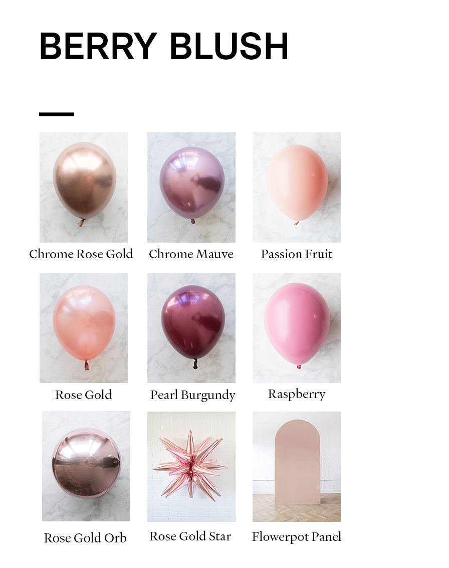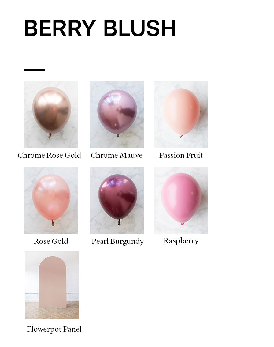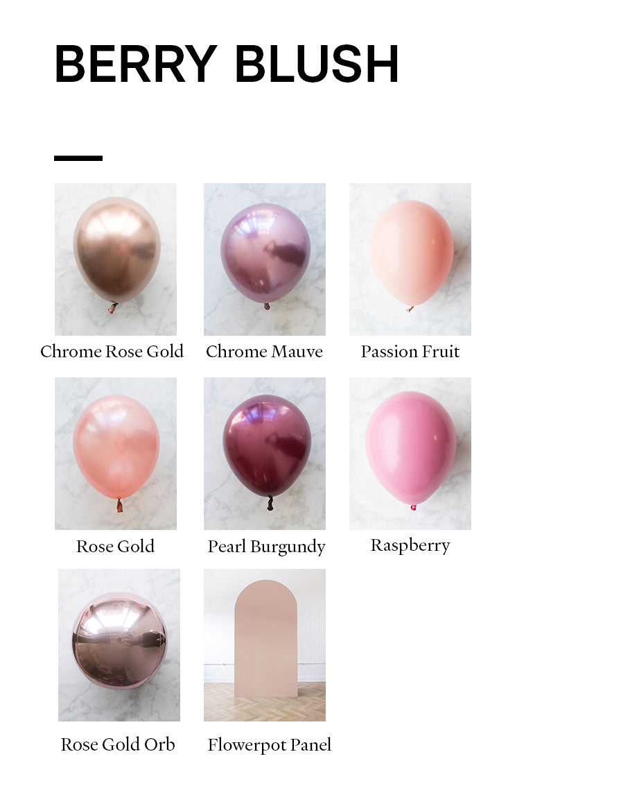 Balloon - pearl burgundy, chrome rose gold, chrome mauve, rose gold, passion fruit, raspberry