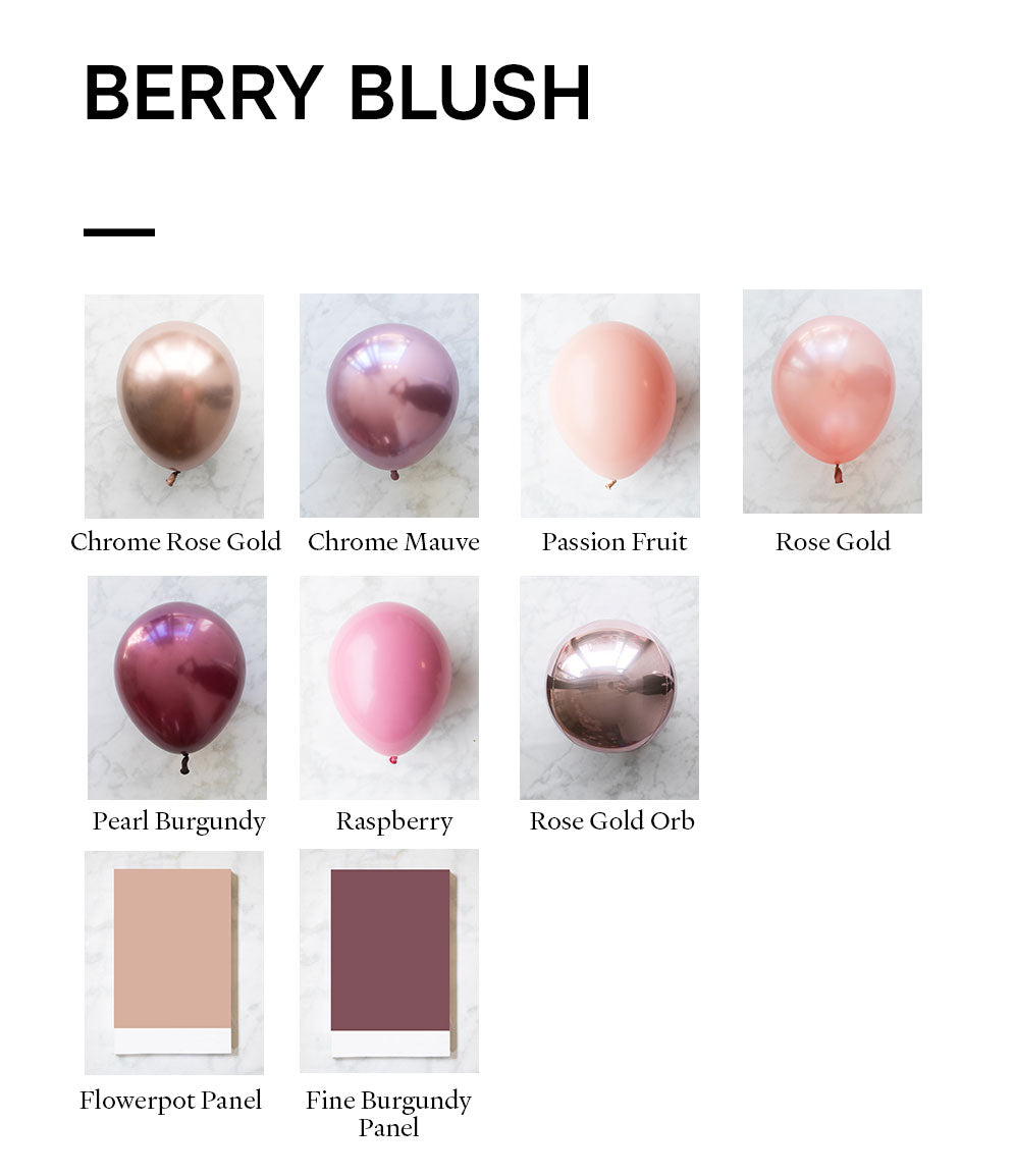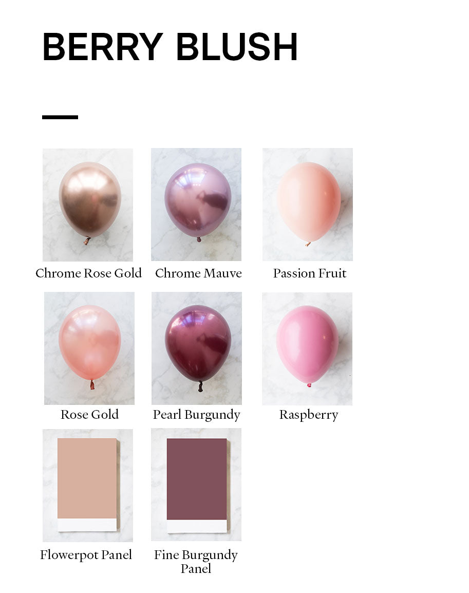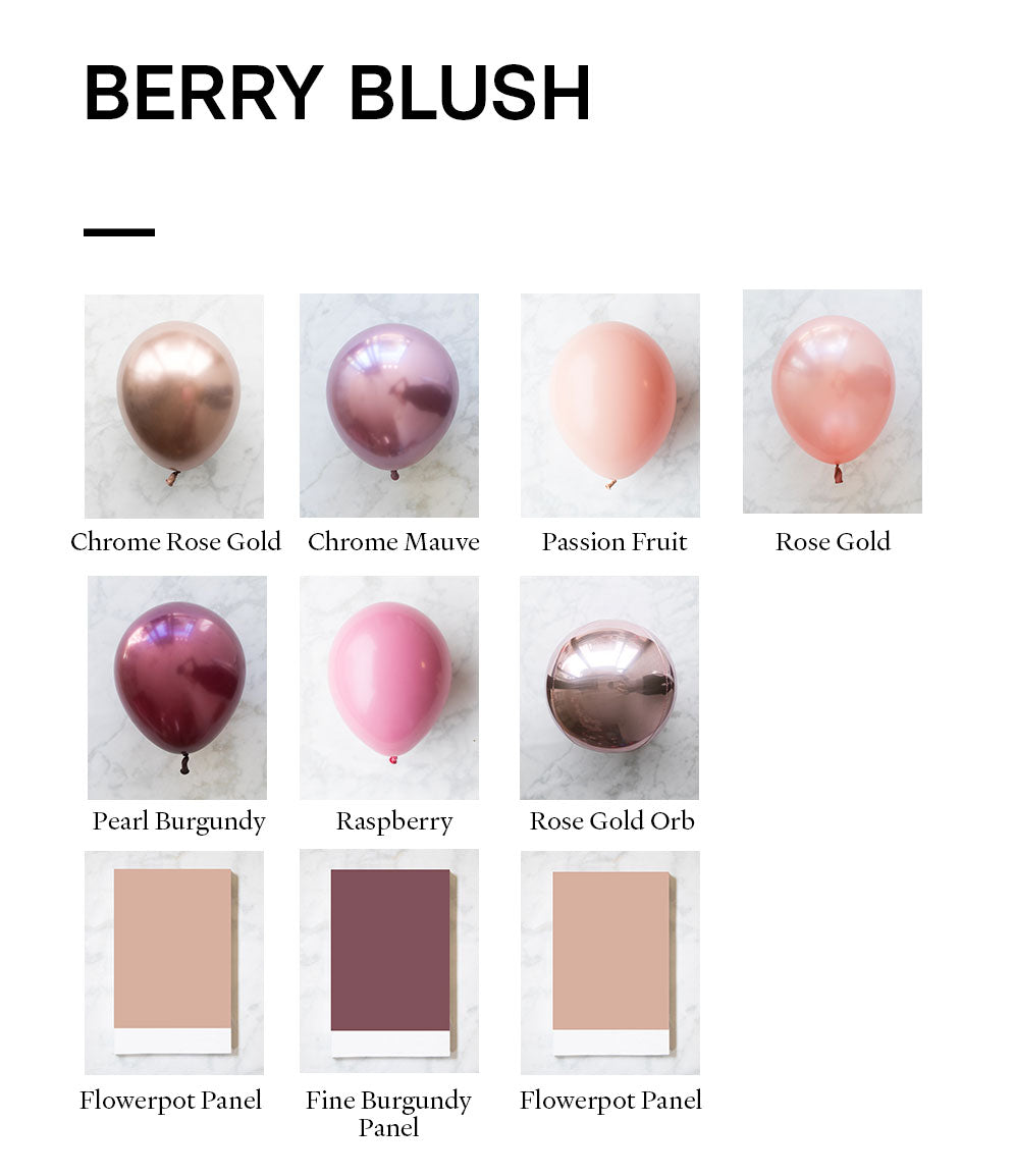 Balloon - pearl burgundy, chrome rose gold, chrome mauve, rose gold, passion fruit, raspberry