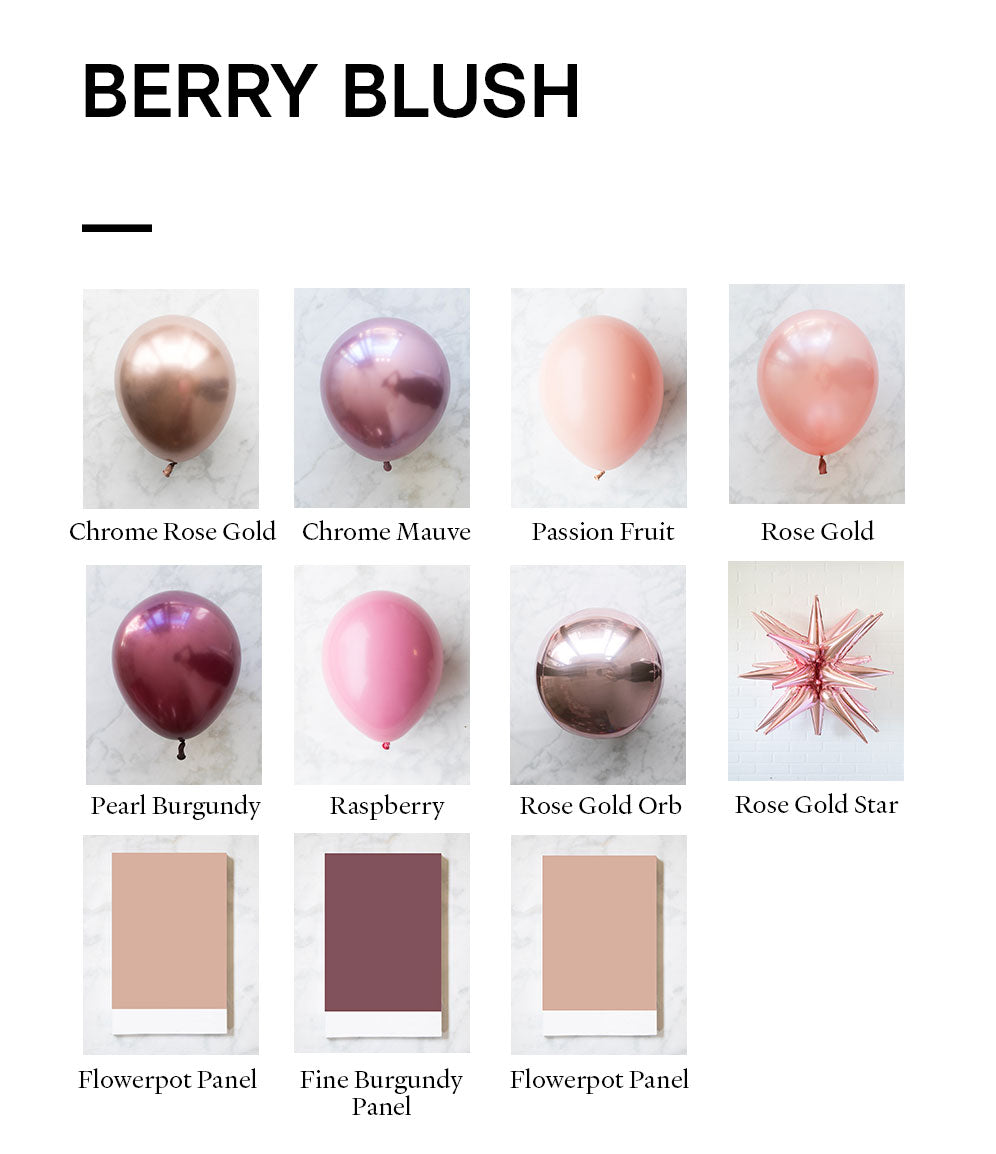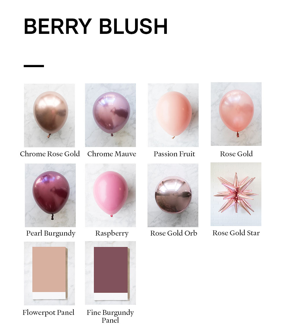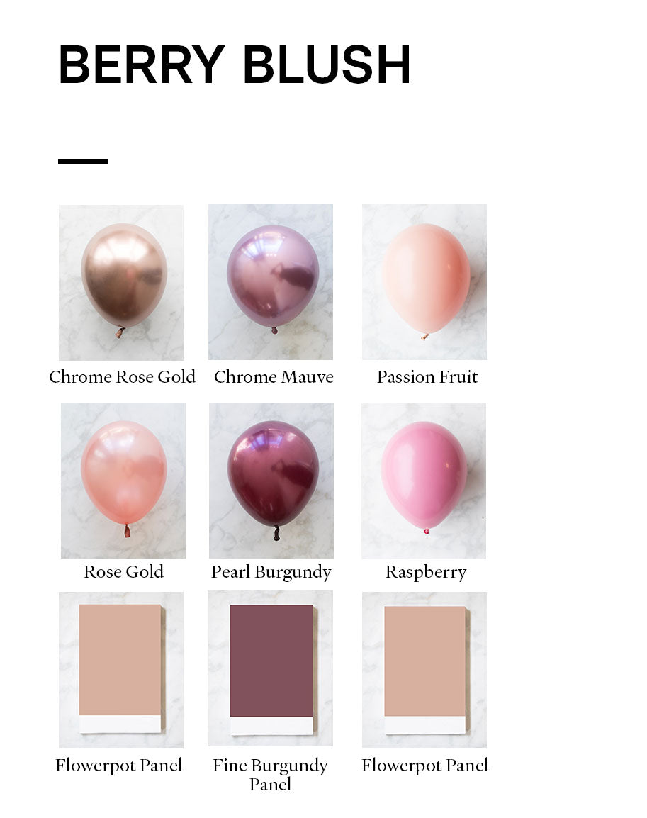 Balloon - pearl burgundy, chrome rose gold, chrome mauve, rose gold, passion fruit, raspberry