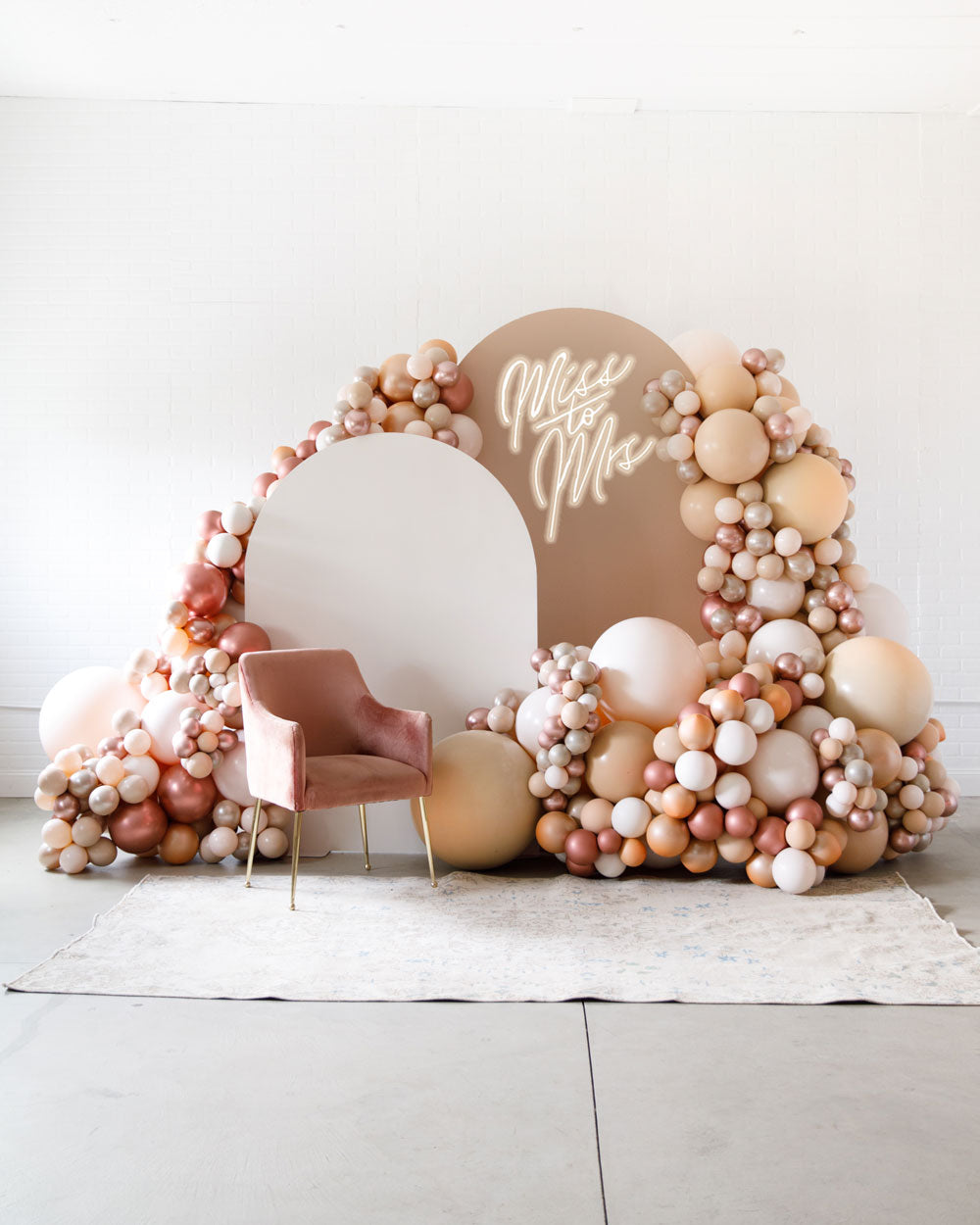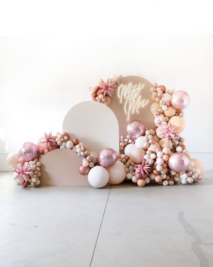 Stand out in style with this panel and balloon garland design. This includes a 7ft panel backdrop with organic balloon garland to match. Add foil accents to make your photo backdrop stand out even more!
