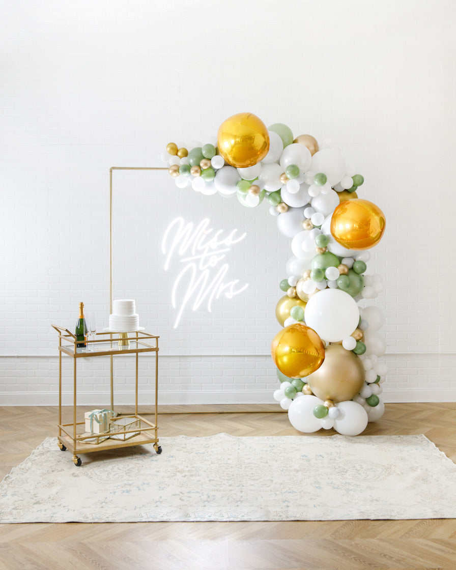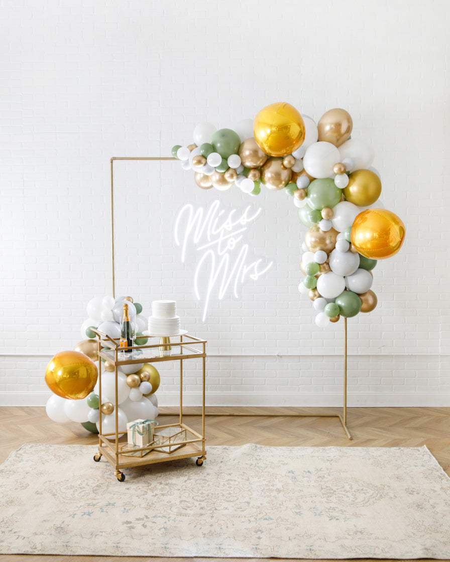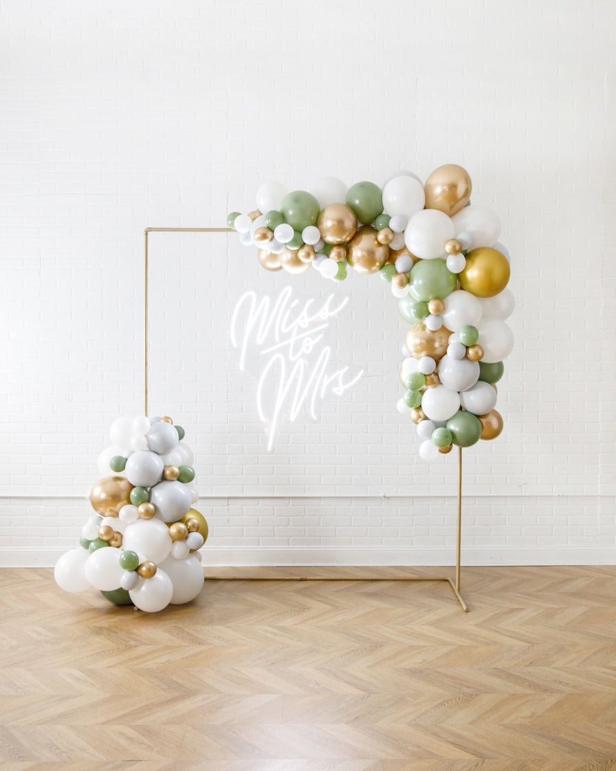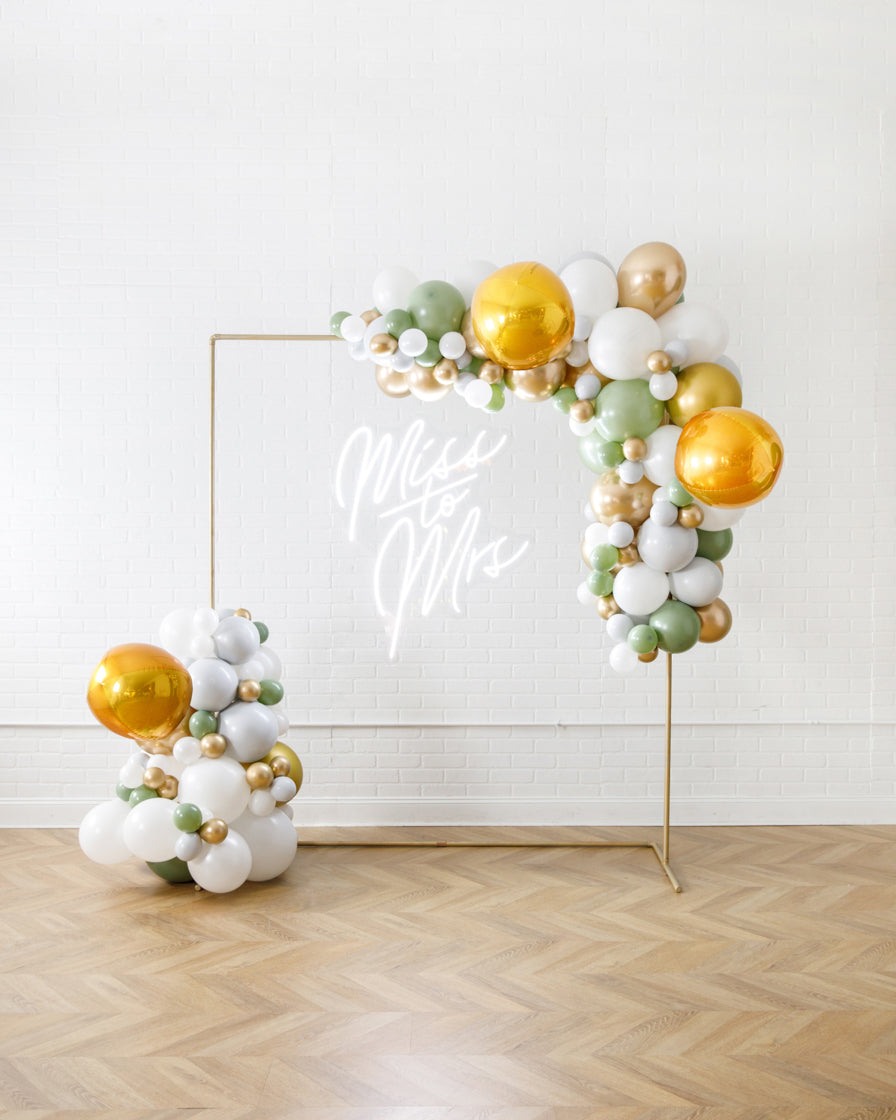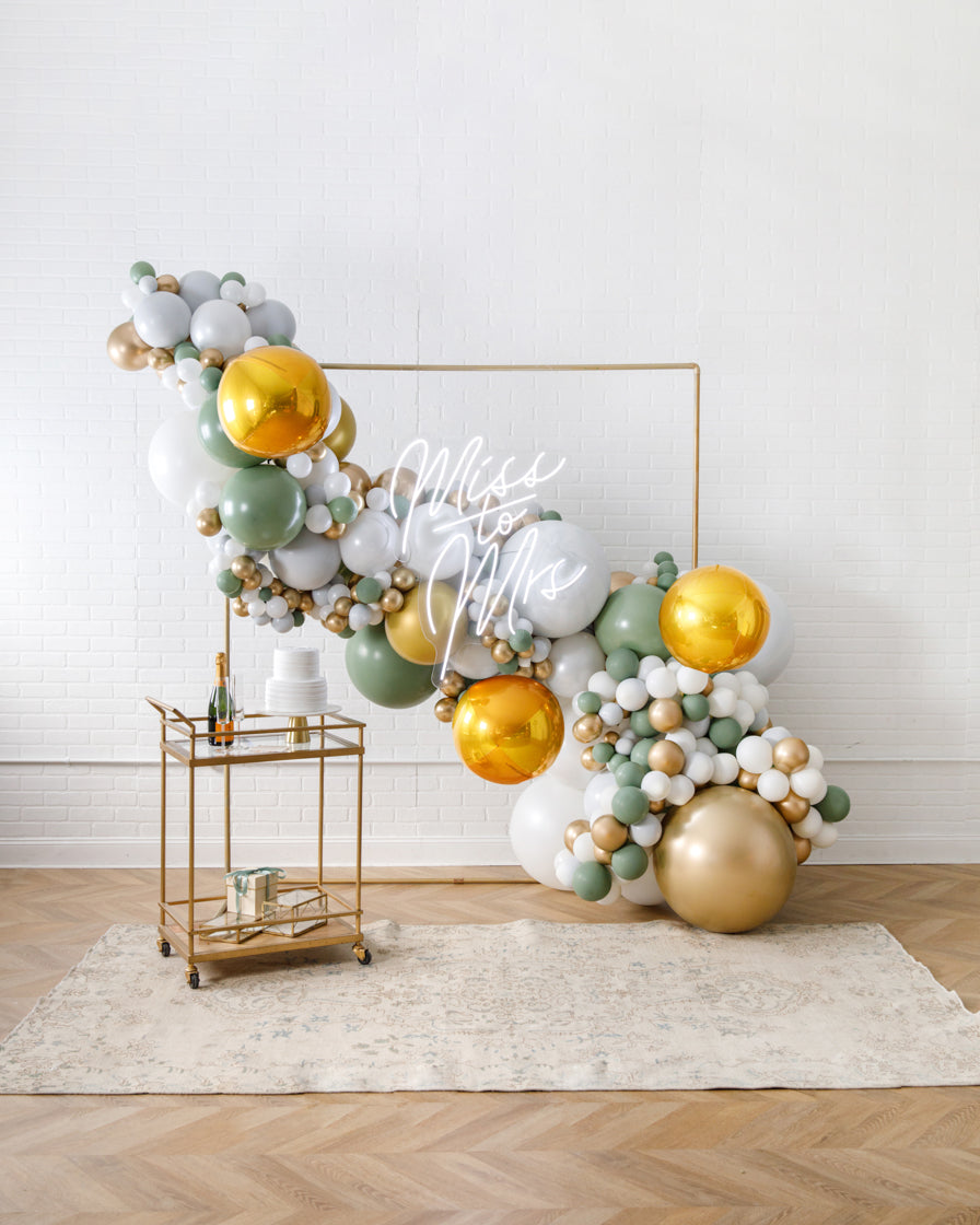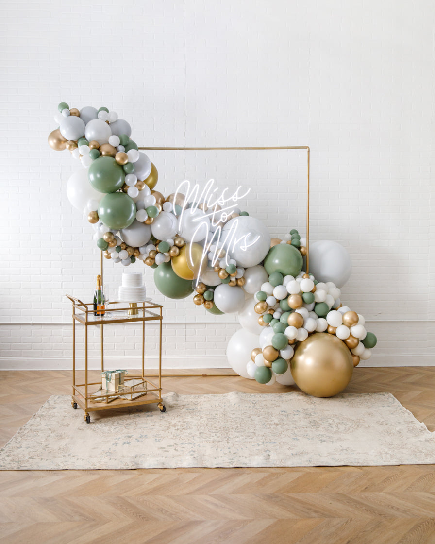 Really take your celebration to the next level with our garland frame and neon set. With our bright Miss to Mrs neon and organic garland, you'll get plenty of photo-ops your guests will love.