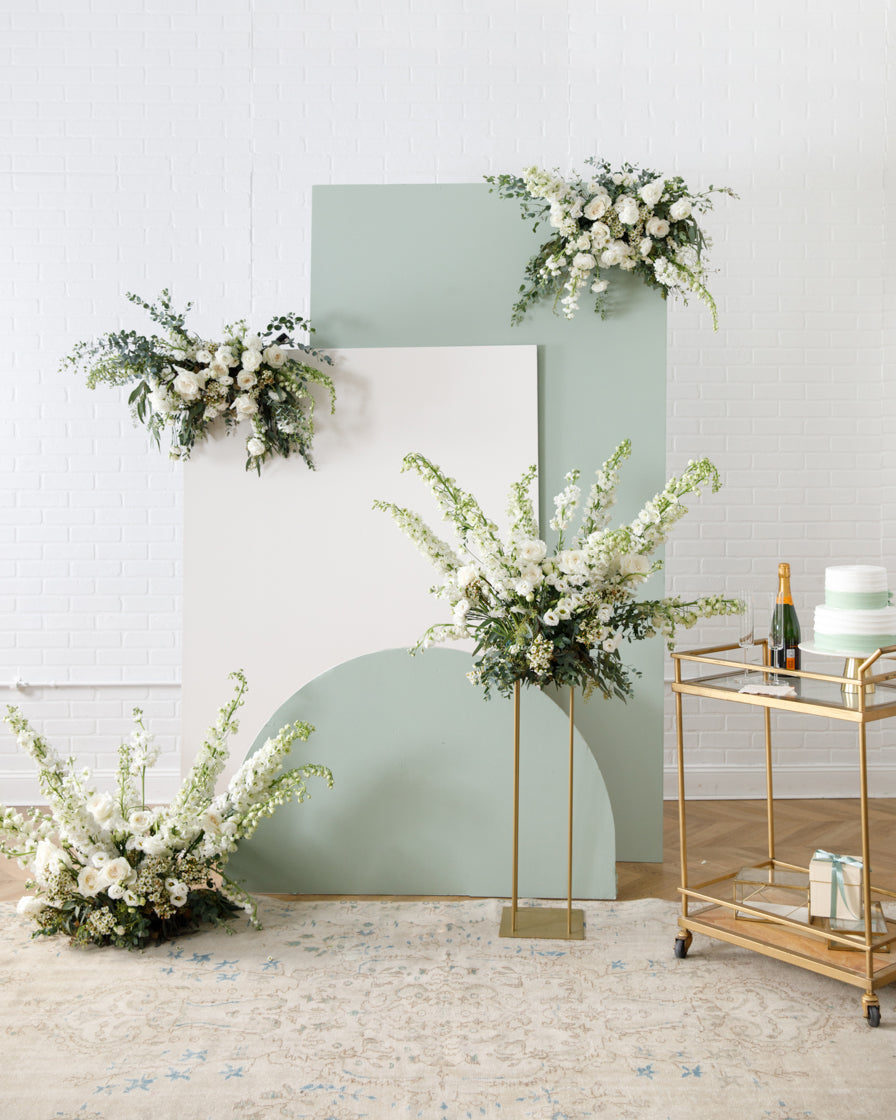 Create a breathtaking moment for your bridal celebration with this panel and floral design.