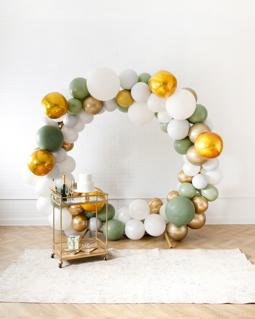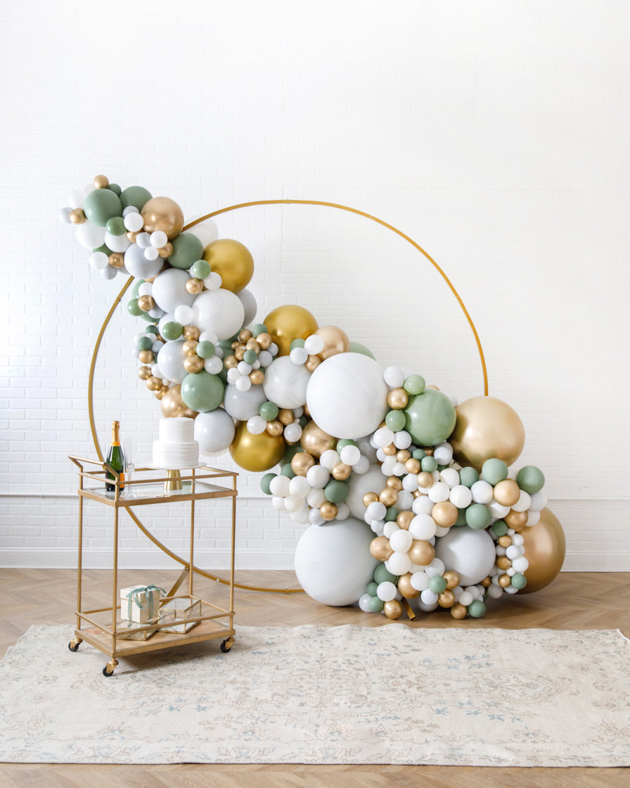 Make this a celebration you'll never forget with our signature garland on circular frame. This design creates an instant Photo Backdrop that your guests will love! With a gold frame this stand alone design can be used in any space with ease.