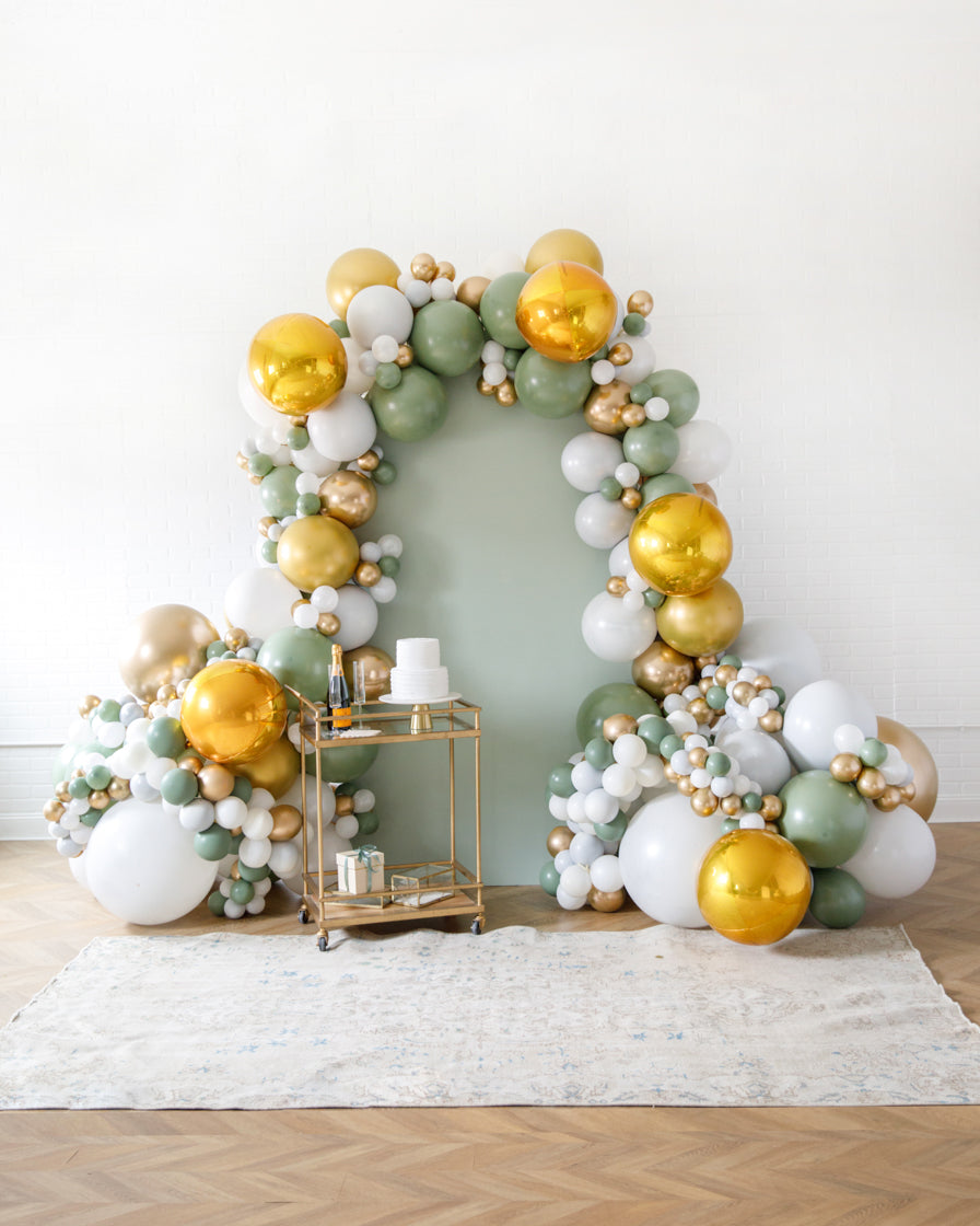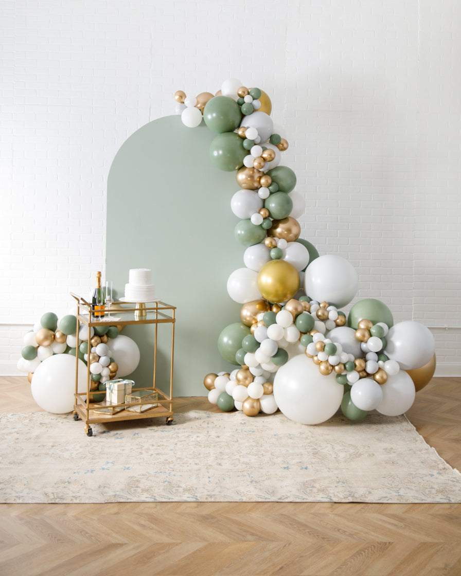 Stand out in style with this panel and balloon garland design. This includes a 7ft panel backdrop with organic balloon garland to match. Add foil accents to make your Photo Backdrop stand out even more for a memorable bridal shower!