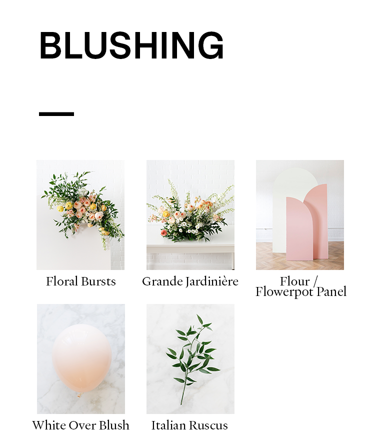Shower her with plenty of love and style with this delicate design. This includes our signature Bellamy panels with captivating floral accents and our grande jardineire to match. This makes for a one of kind photo backdrops.