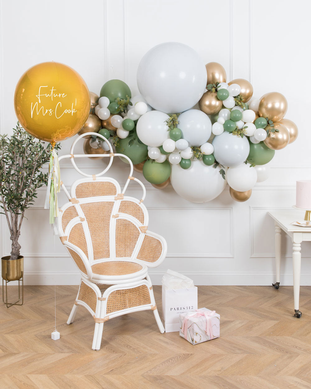 Fill your space with our Blushing bridal themed balloon set. This includes a 7ft balloon garland with greenery, as well as a rose gold orb balloon. Add this to your space for a one of kind shower. The jumbo orb is finished in a colorful half-tassel for extra glam.