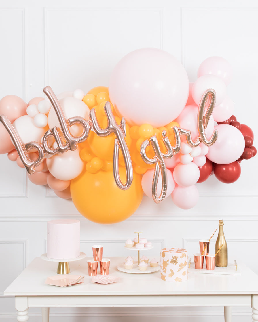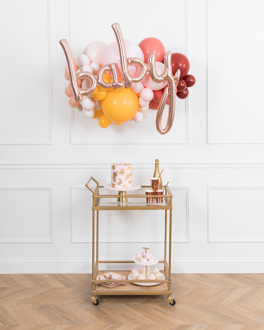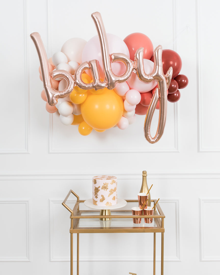 Bring some beauty to your baby shower with this 6ft balloon garland. This gorgeous piece is dressed with fun star foils and a baby script and can be installed above a sweets table or on a wall for a photo op.