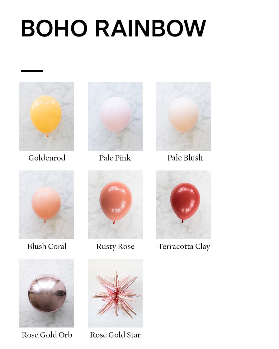 Balloon - goldenrod, pale pink, light blush, blush coral, rusty rose, terracotta clay