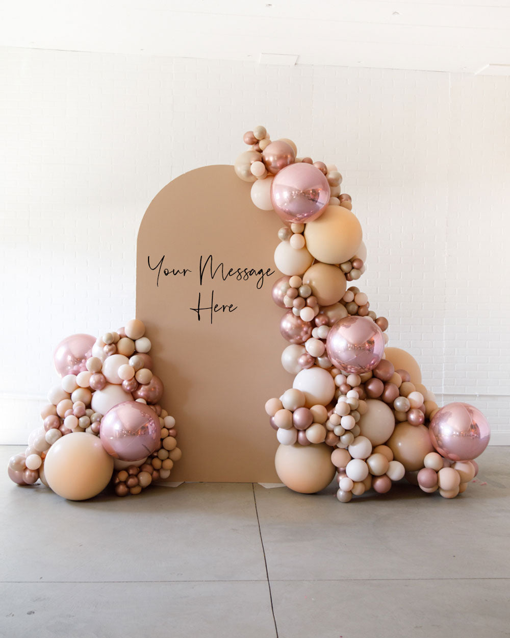 Stand out in style with this panel and balloon garland design. This includes a 7ft panel backdrop with organic balloon garland to match. Add foil accents to make your photo backdrop stand out even more!