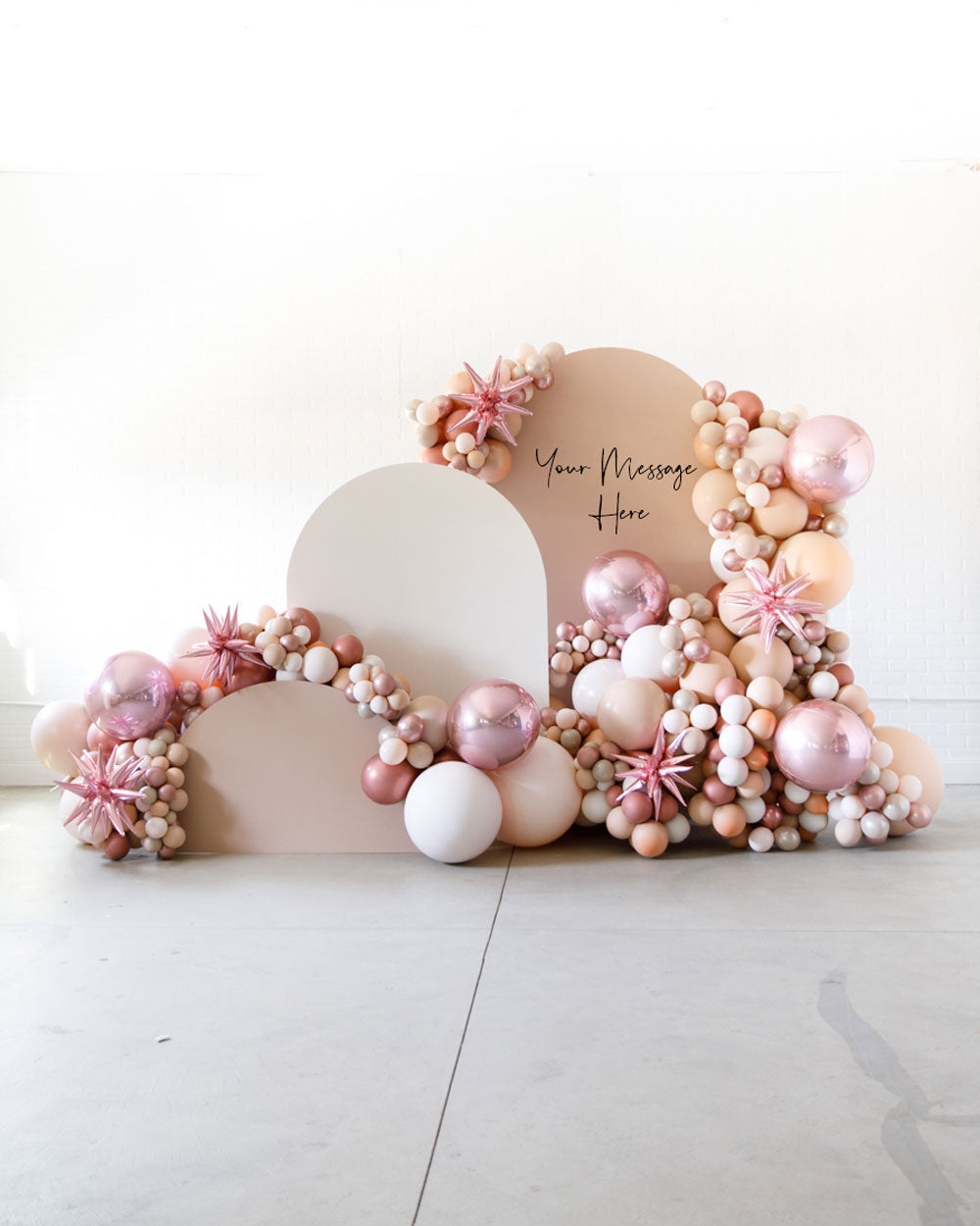 Stand out in style with this panel and balloon garland design. This includes a 7ft panel backdrop with organic balloon garland to match. Add foil accents to make your photo backdrop stand out even more!