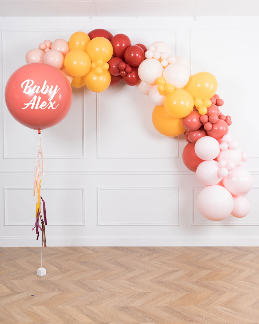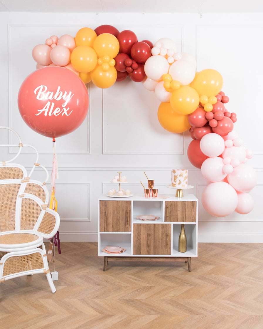 Bring your party together with this adorable and easy shower decor package. Quickly transport your space with this set includes a 12ft balloon garland and a giant balloon with tassel.