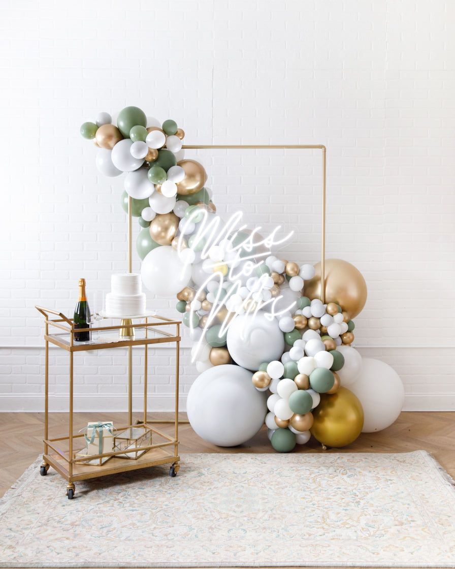 Light up your event with the ultimate backdrop! This balloon garland design includes balloons along a circular frame, as well as a beautiful neon sign to highlight your occasion in style! This works perfectly in any space and will wow your guests!