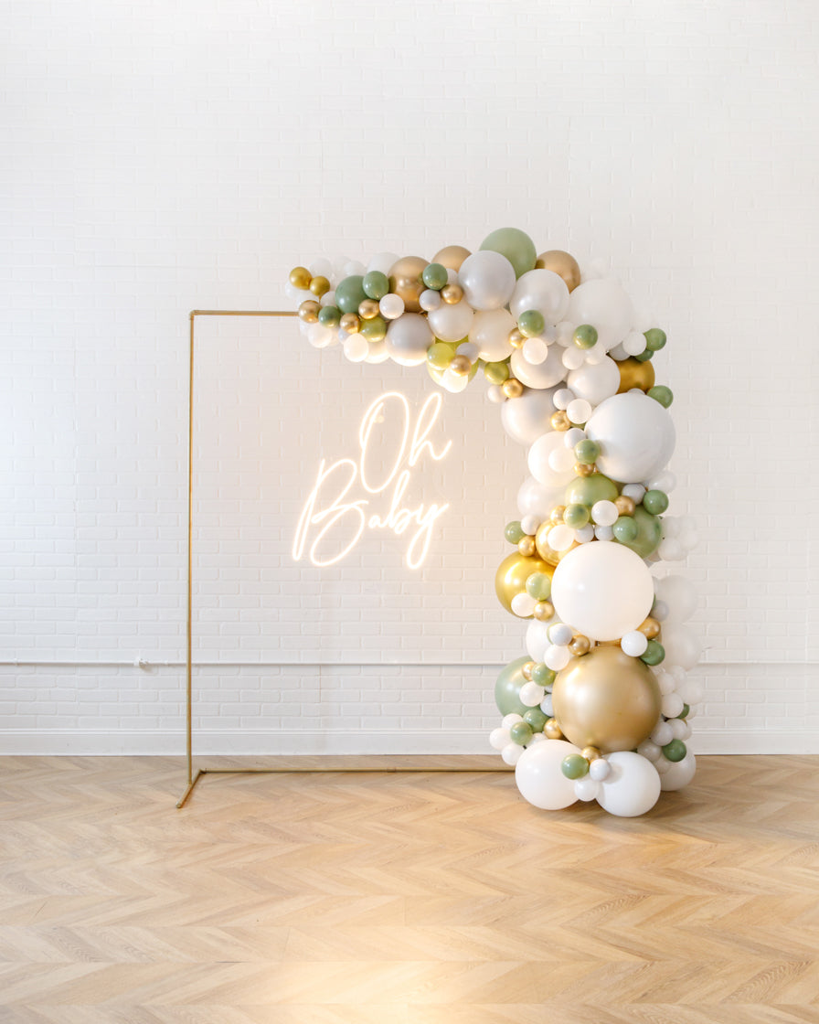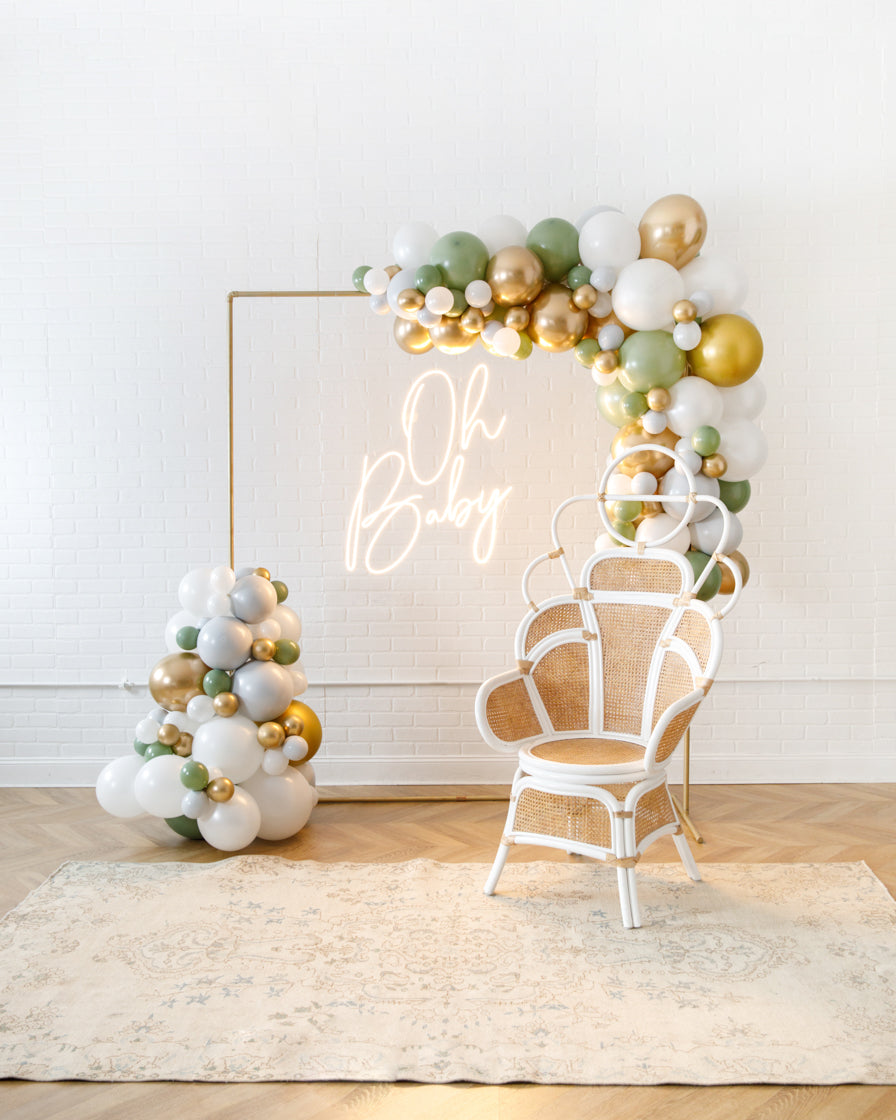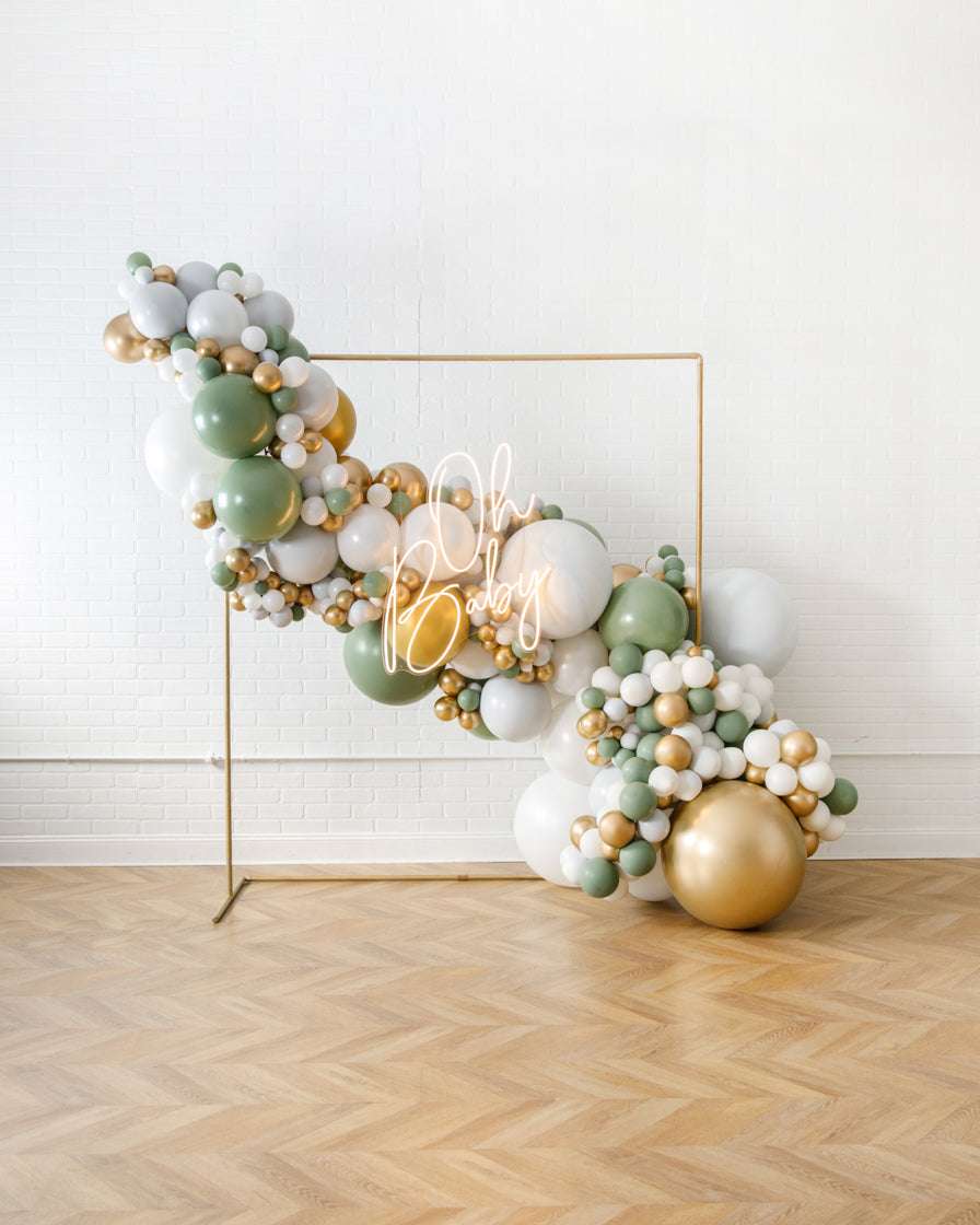 Light up your event with the ultimate backdrop! This balloon garland design includes balloons along a circular frame, as well as a beautiful neon sign to highlight your occasion in style! This works perfectly in any space and will wow your guests!