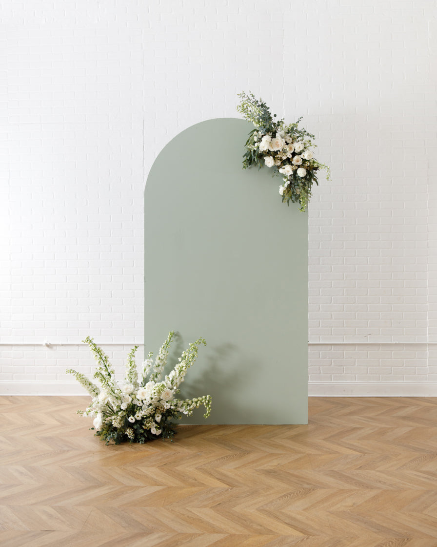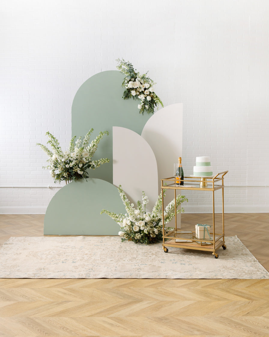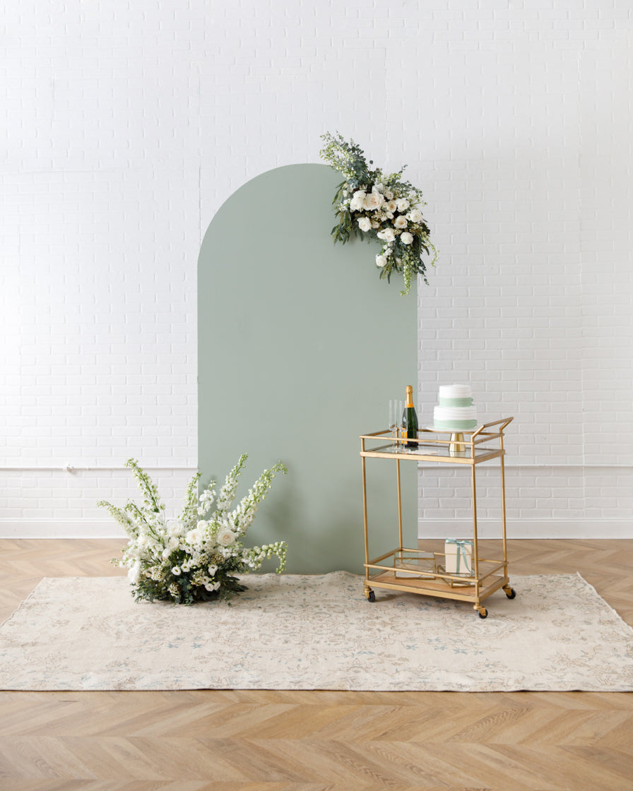 Your celebration will be inspired and beautiful with this panel and floral set. With a modern design and sophisticated floral statement pieces, you can't help but fall in love. Add a stunning balloon garland for additional impact to this display.
