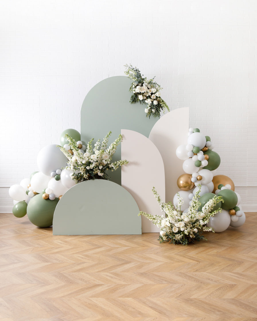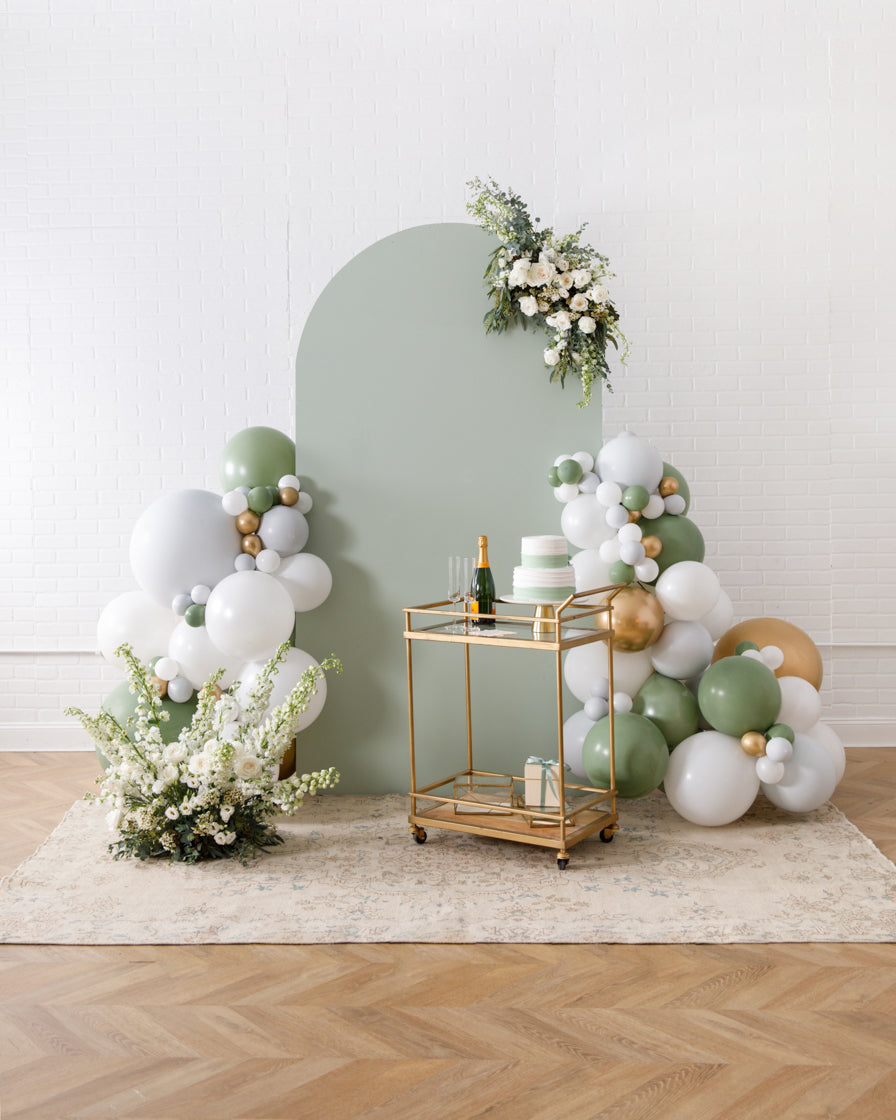 Balloons - eucalyptus, white, pearl white, chrome gold, cloud grey