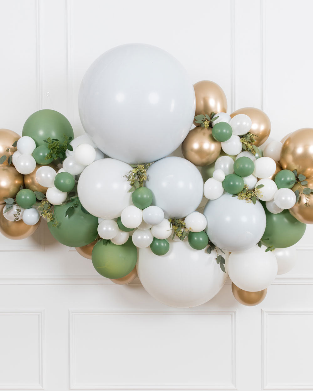 Balloons - eucalyptus, white, pearl white, chrome gold, cloud grey