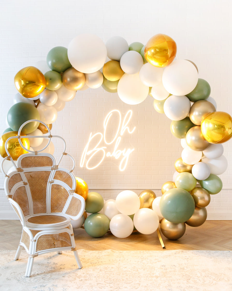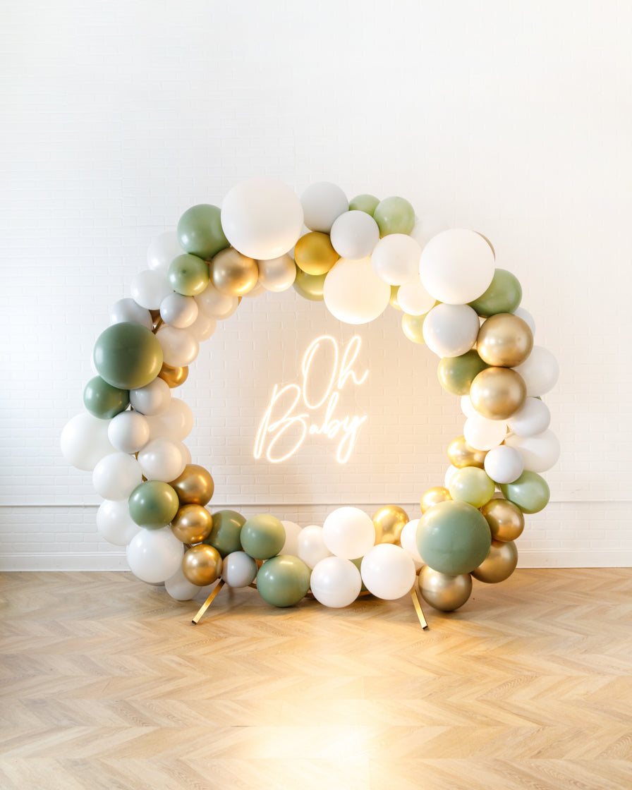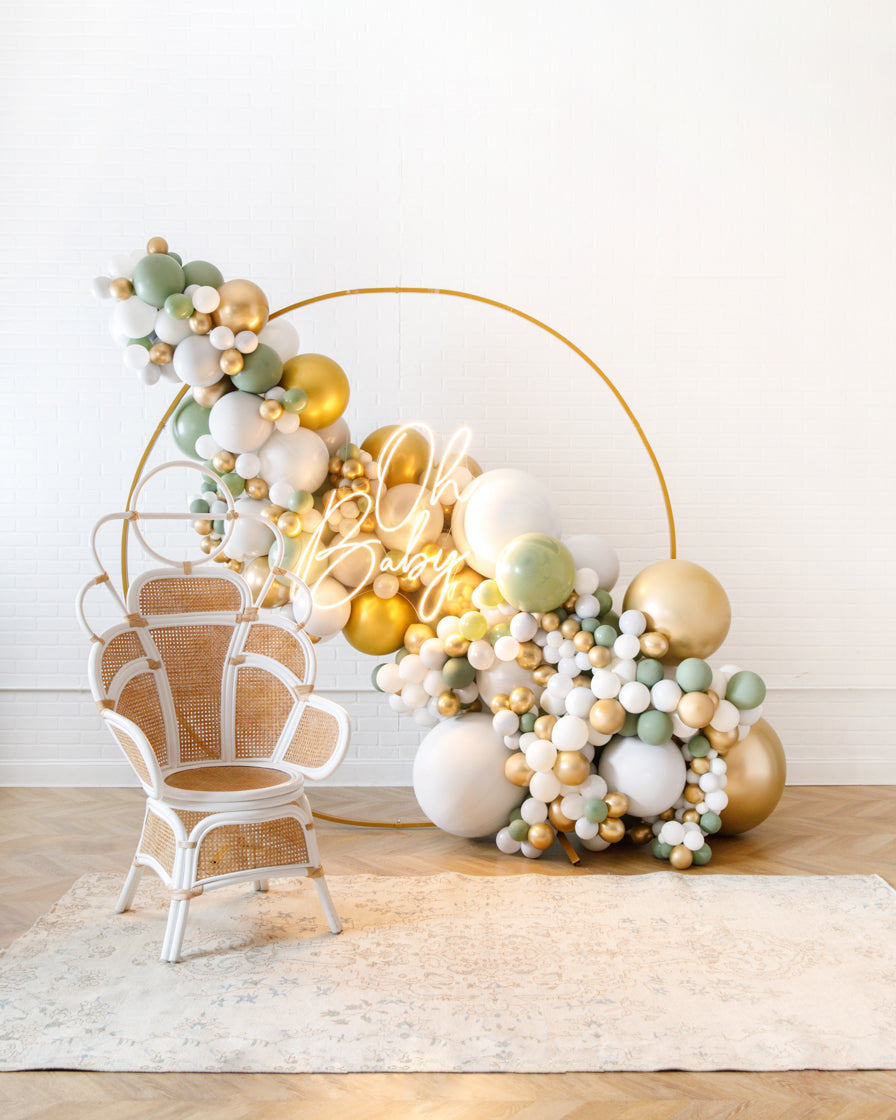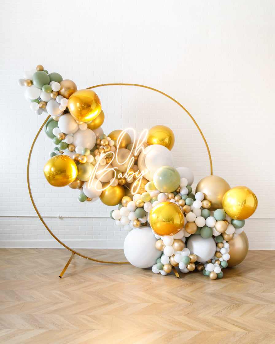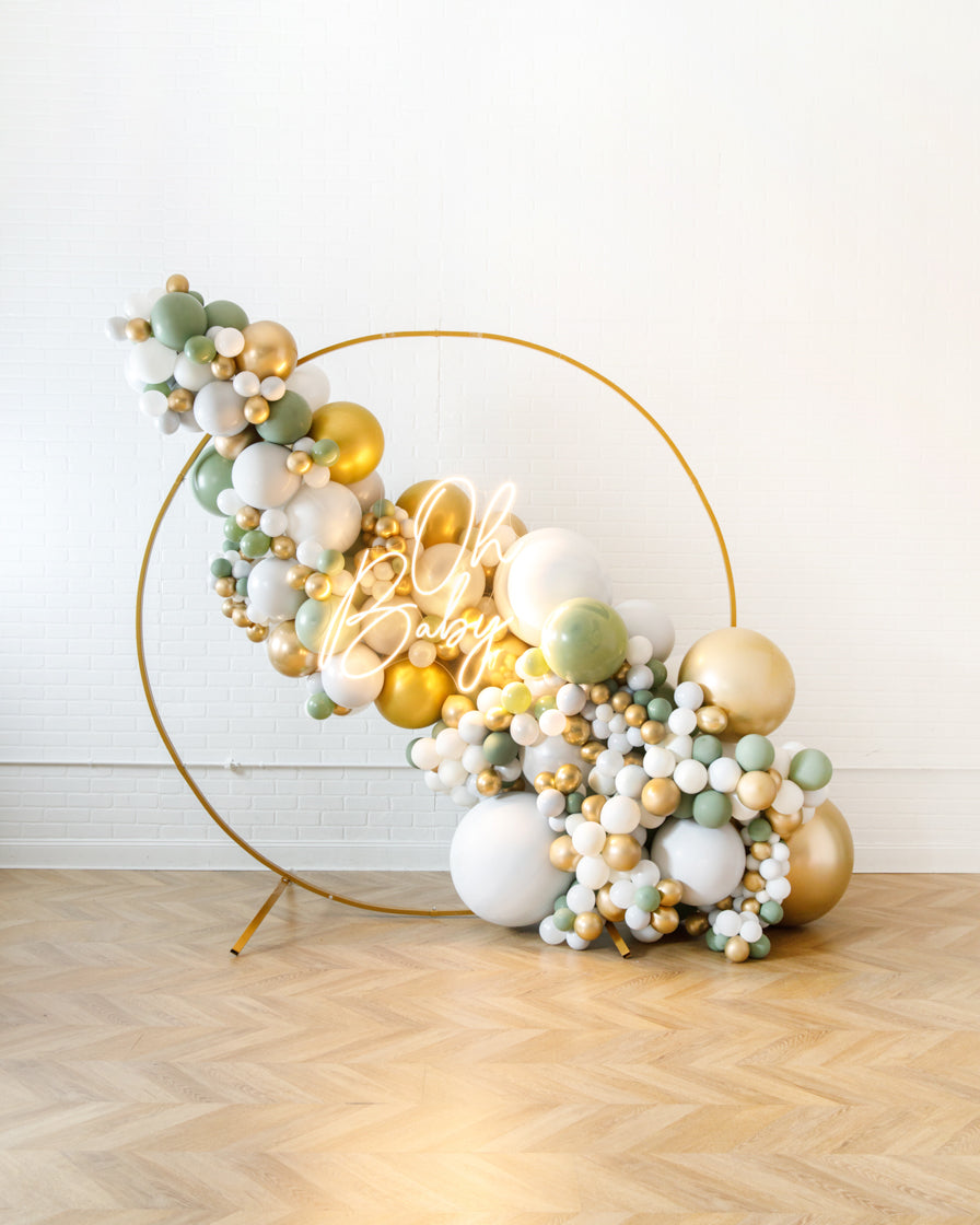 Light up your event with the ultimate backdrop! This balloon garland design includes balloons along a circular frame, as well as a beautiful neon sign to highlight your occasion in style! This works perfectly in any space and will wow your guests!
