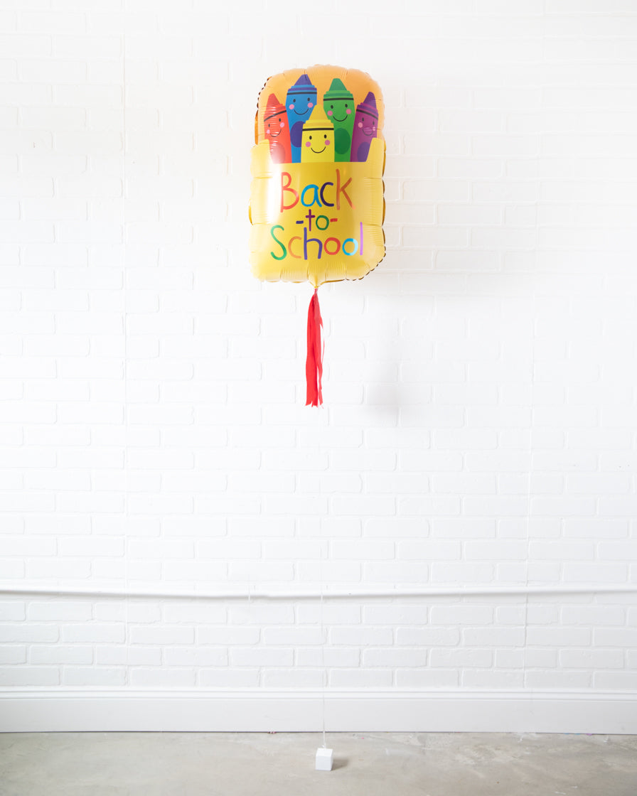 Make the start of the new school year extra fun! This colorful crayon box foil balloon with skirt will dress up any room and create an adorable photo-op for any little one ready for their first day!