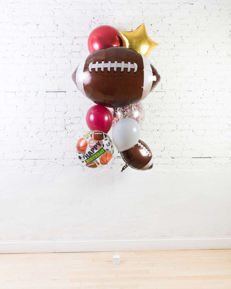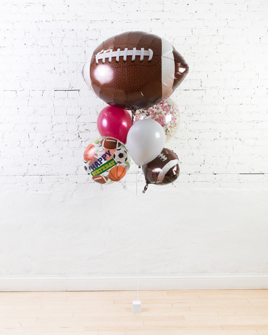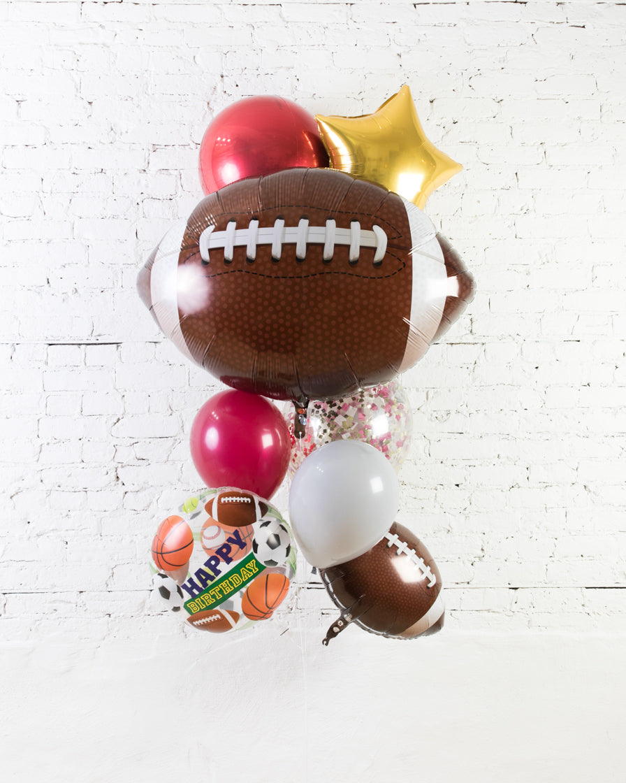 A themed bouquet with flair. We've mixed in all the fan-favorite balloons in this arrangement to make a one of a kind present. Add a touch of personalization with a custom vinyl and a card.