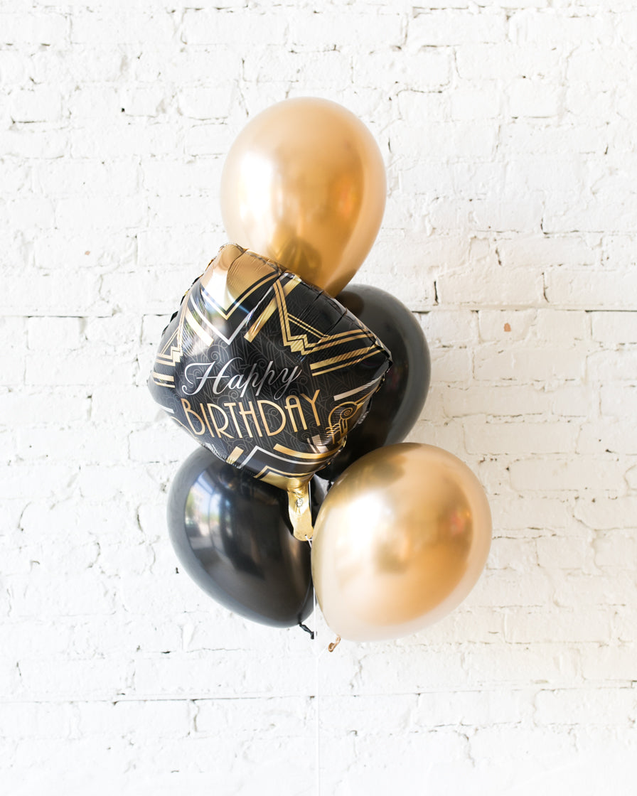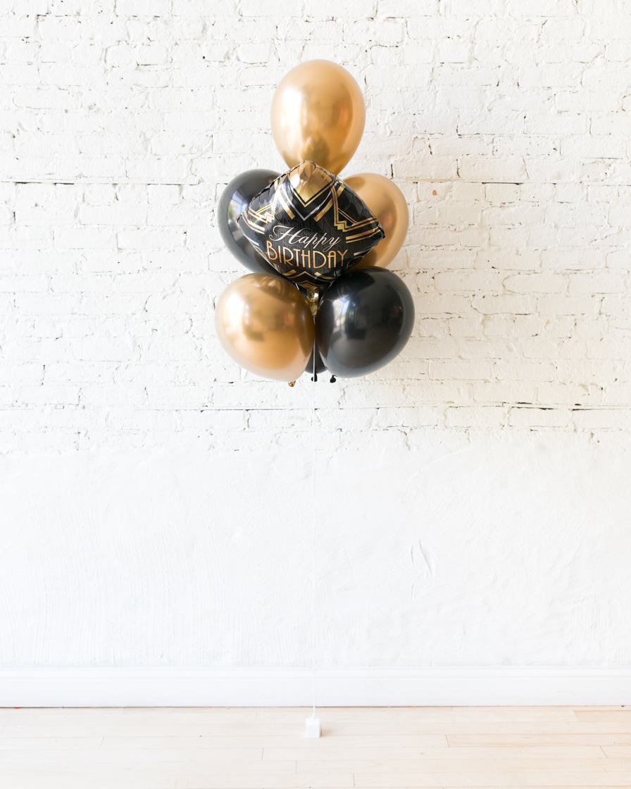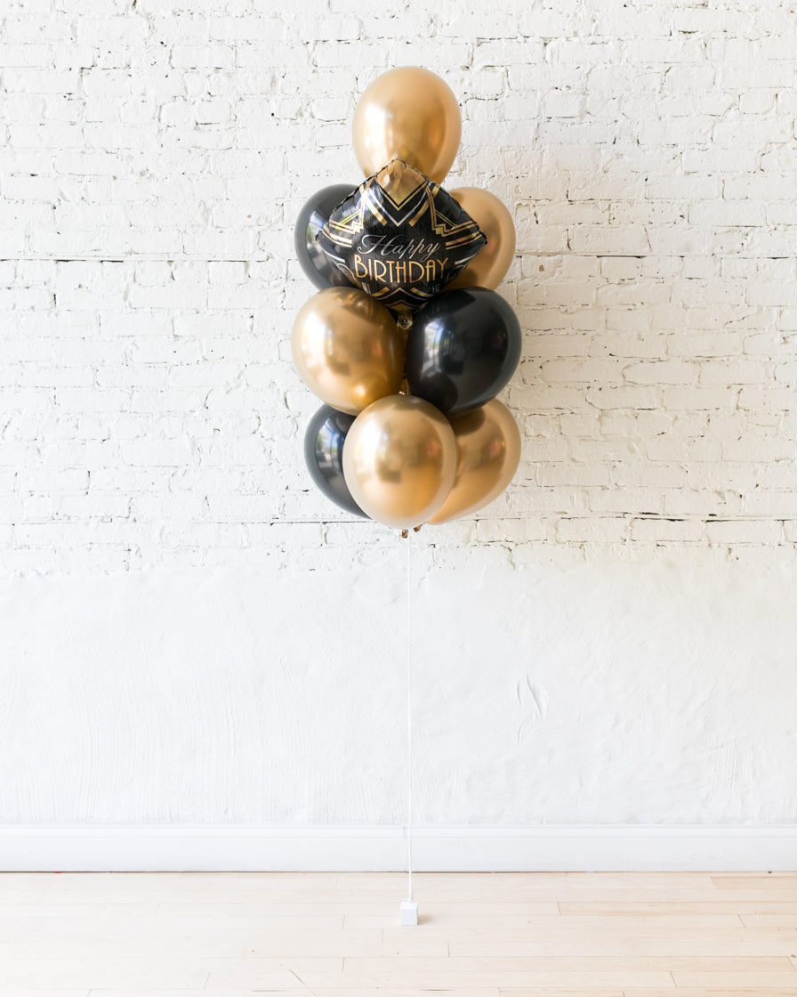 GIFT-Black and Gold Happy Birthday Balloon Bouquet