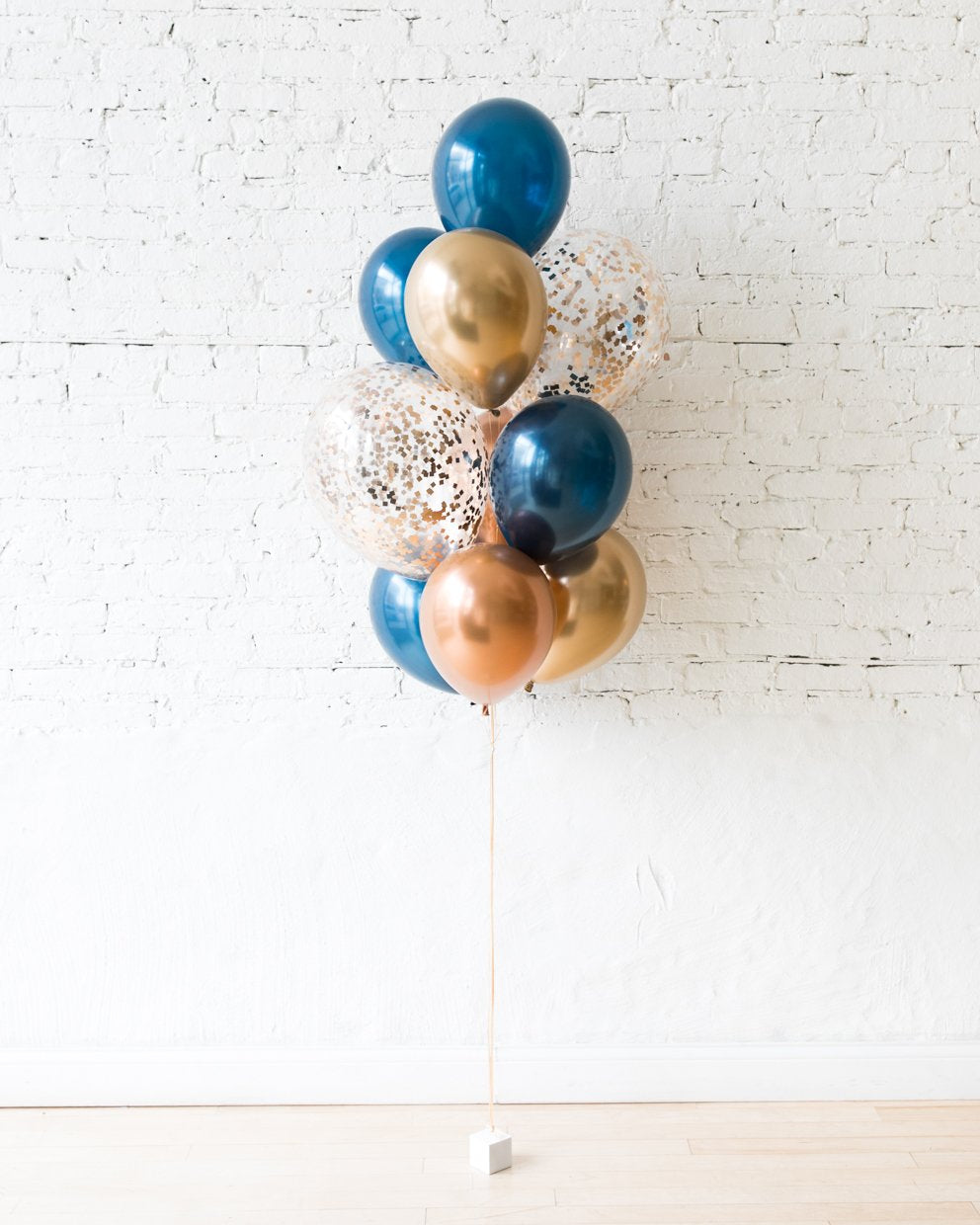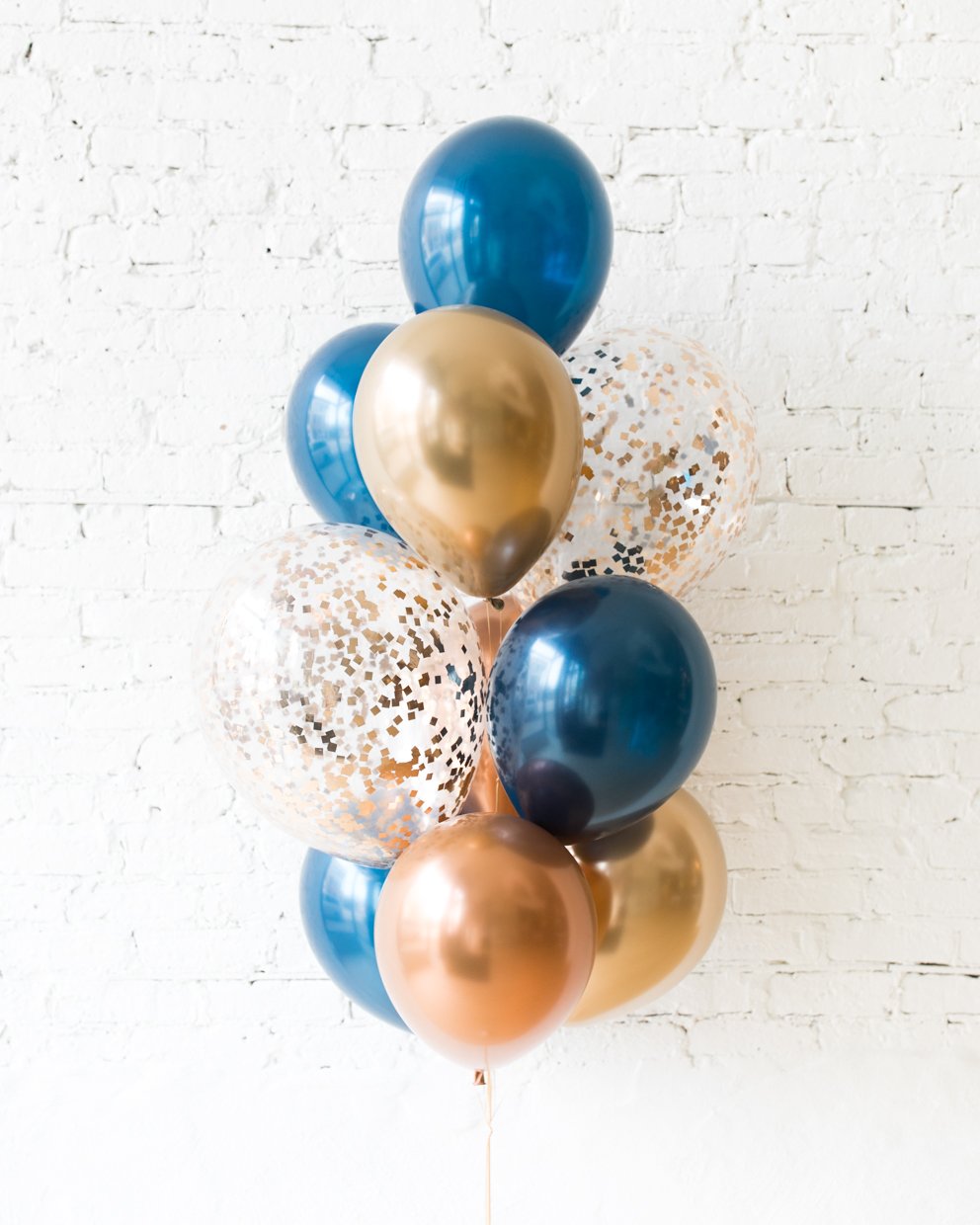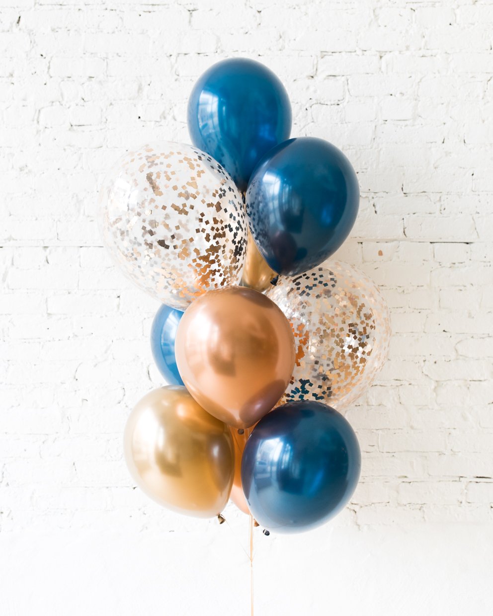 GIFT-Gold, Navy and Copper Palette Confetti and 11in Balloons - bouquet of 10