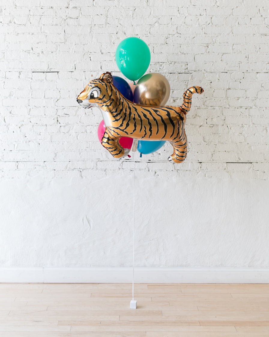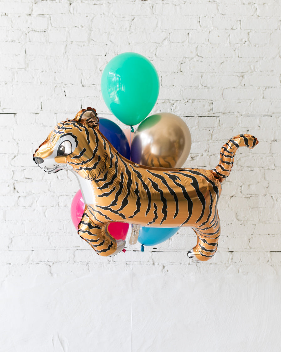 Party Animal Theme - Tiger Foil and 11in Balloons - bouquet of 7
