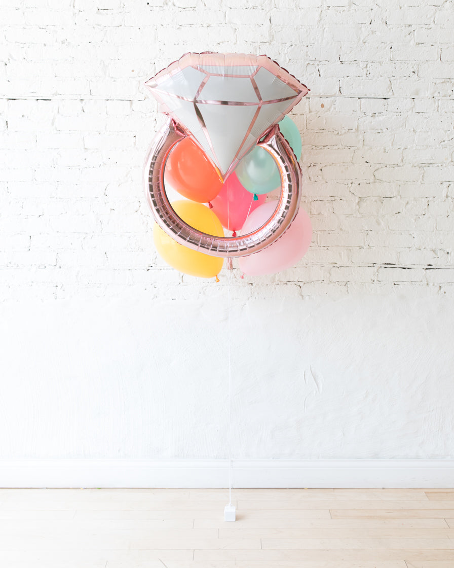 Colorful Bloom - Diamond Ring Foil and 11in Balloons - bouquet of 7