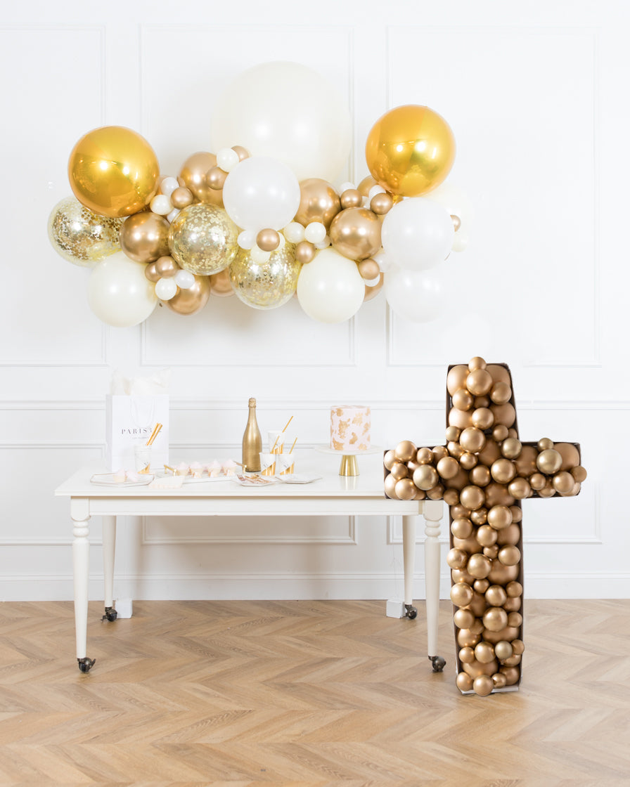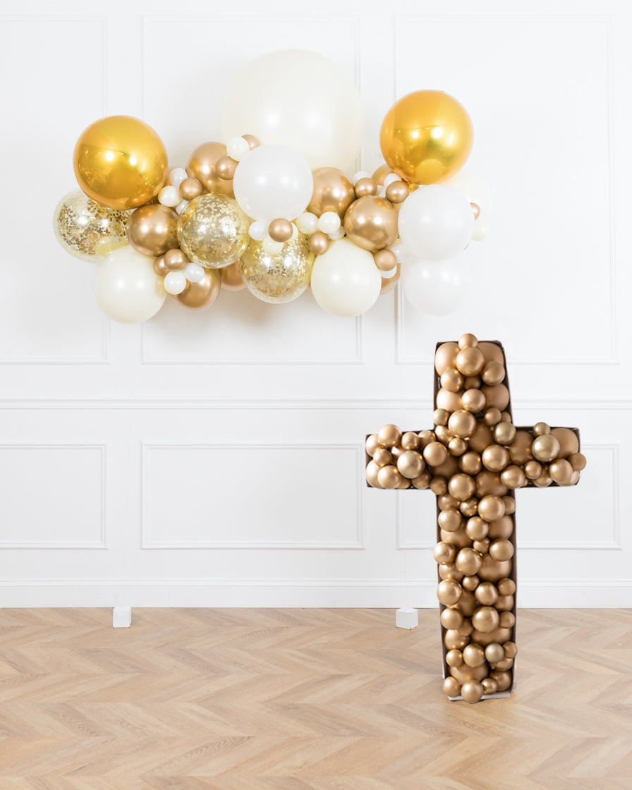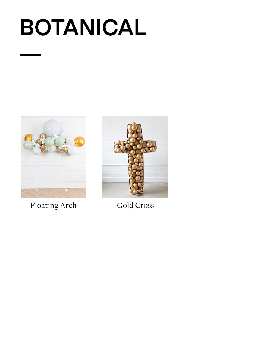 Create the ultimate baptism or first communion with this adorable set! Dress up any space with our 6ft floating balloon arch and a cross balloon mosaic.
