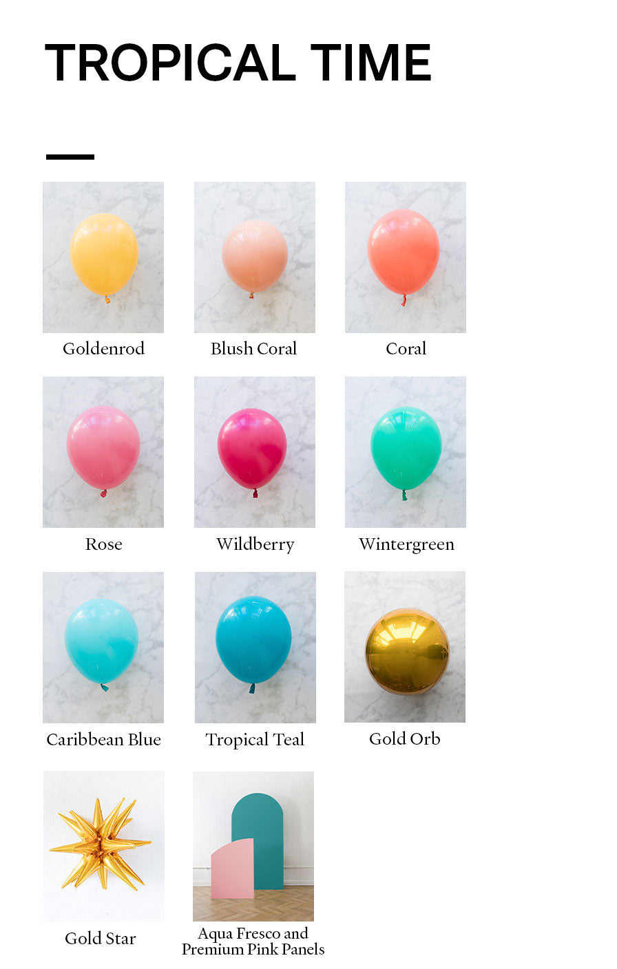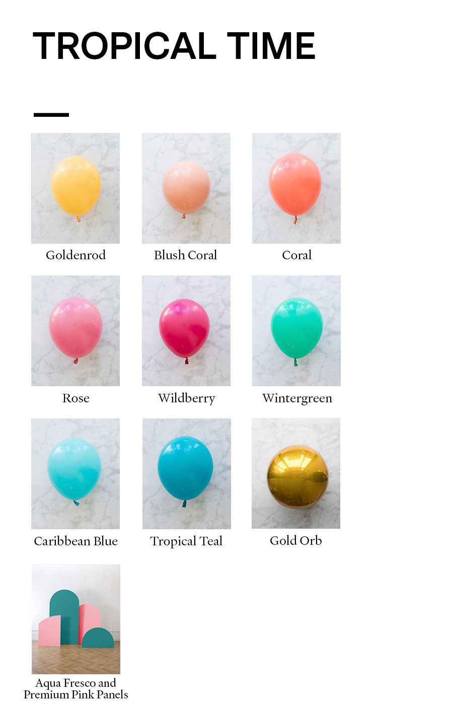 Balloon - goldenrod, blush coral, coral, rose, wildberry, wintergreen, caribbean blue, tropical teal