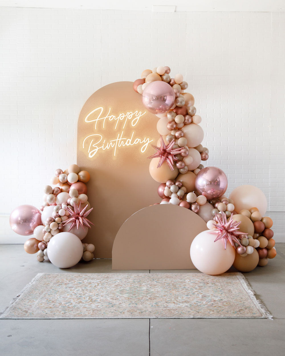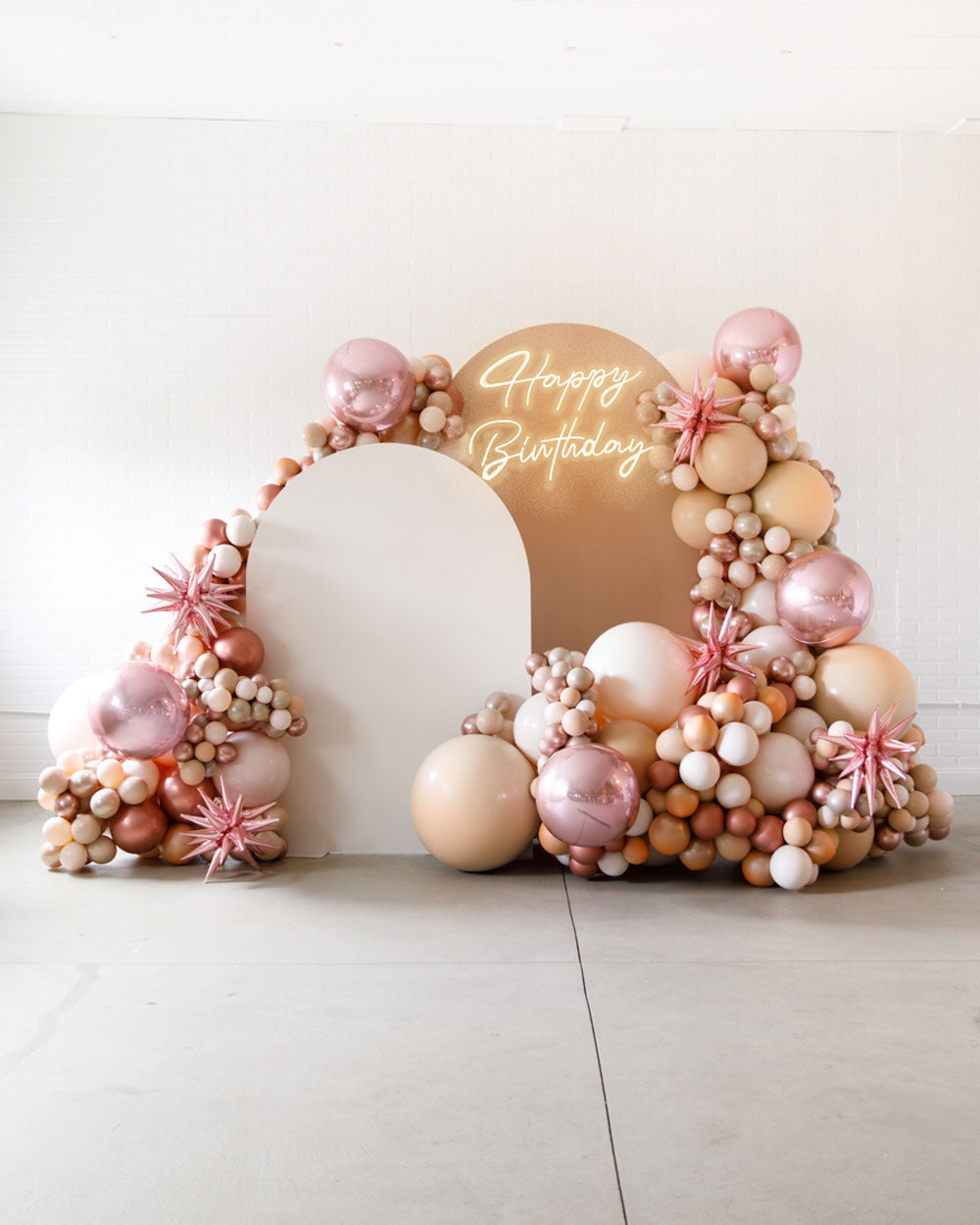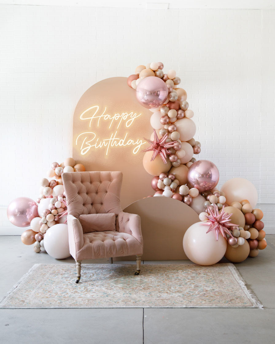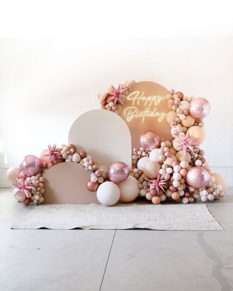 Stand out in style with this panel and balloon garland design. This includes a 7ft panel backdrop with organic balloon garland to match. Add foil accents to make your photo backdrop stand out even more!
