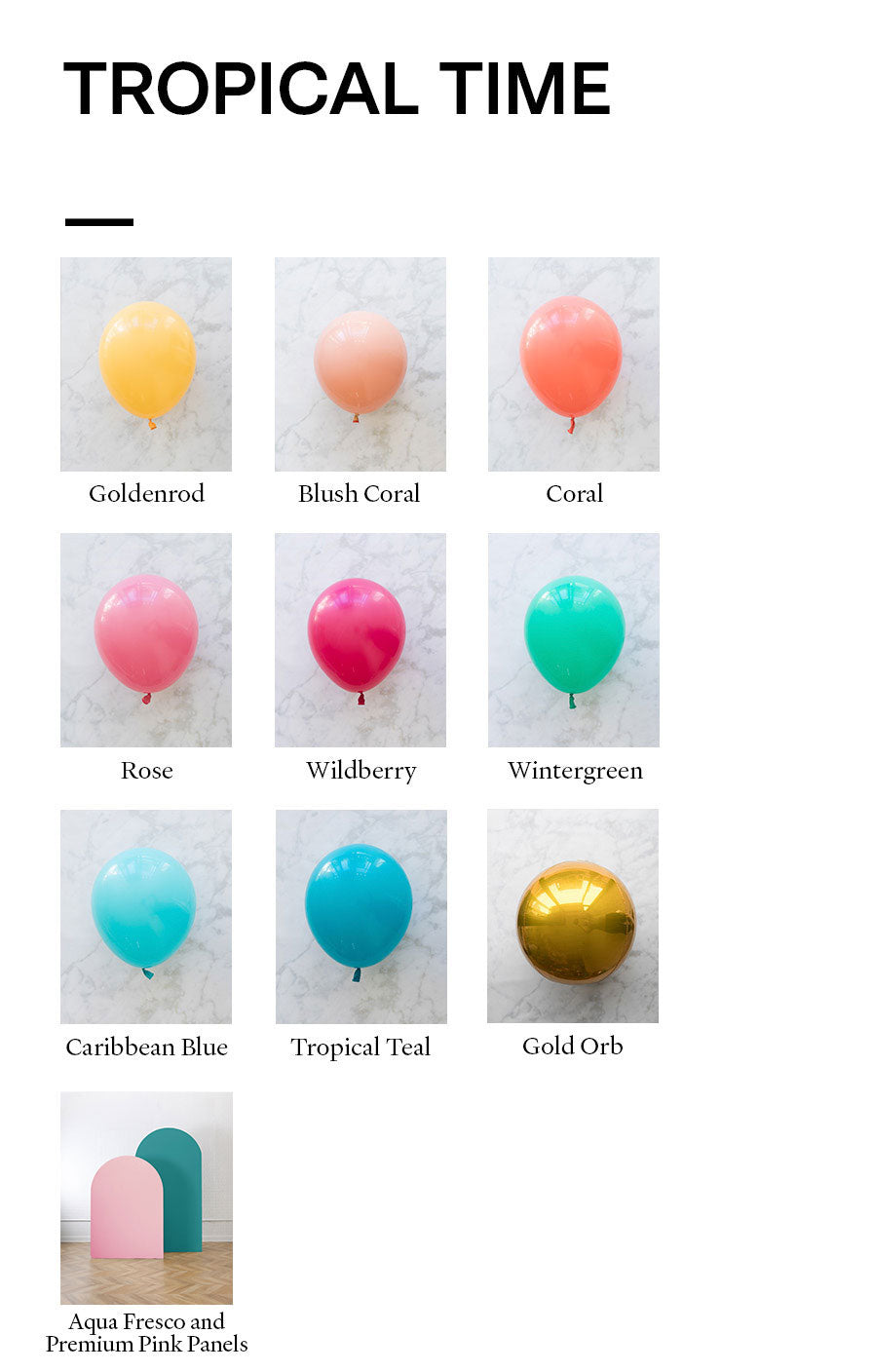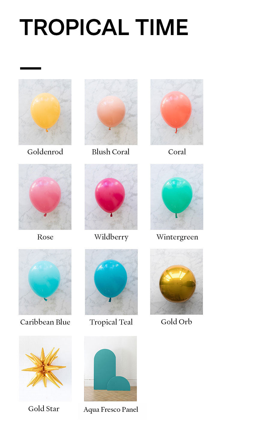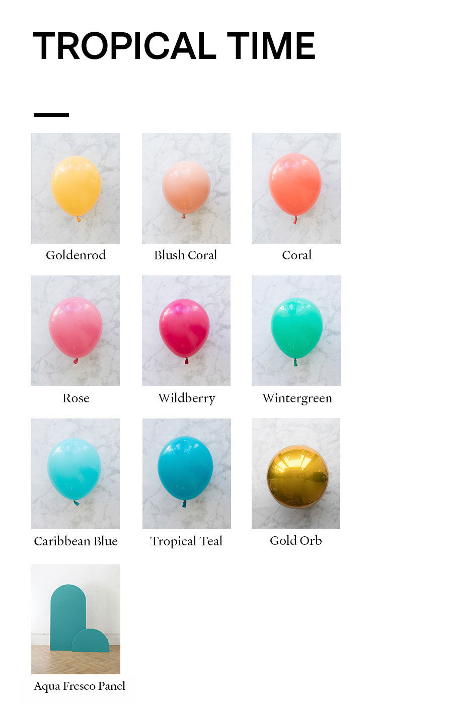 Balloon - goldenrod, blush coral, coral, rose, wildberry, wintergreen, caribbean blue, tropical teal