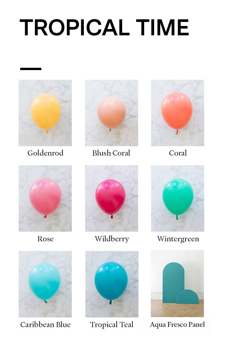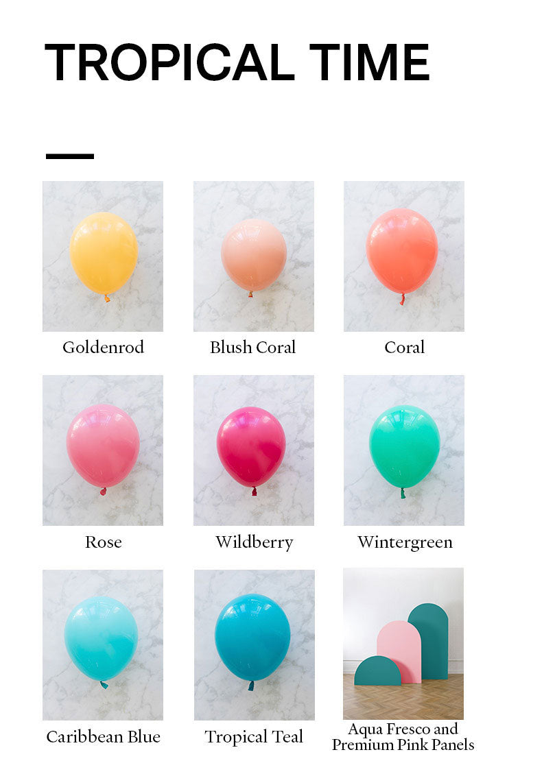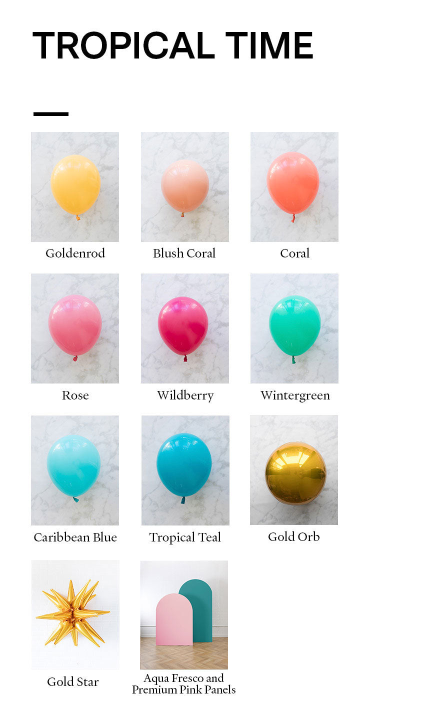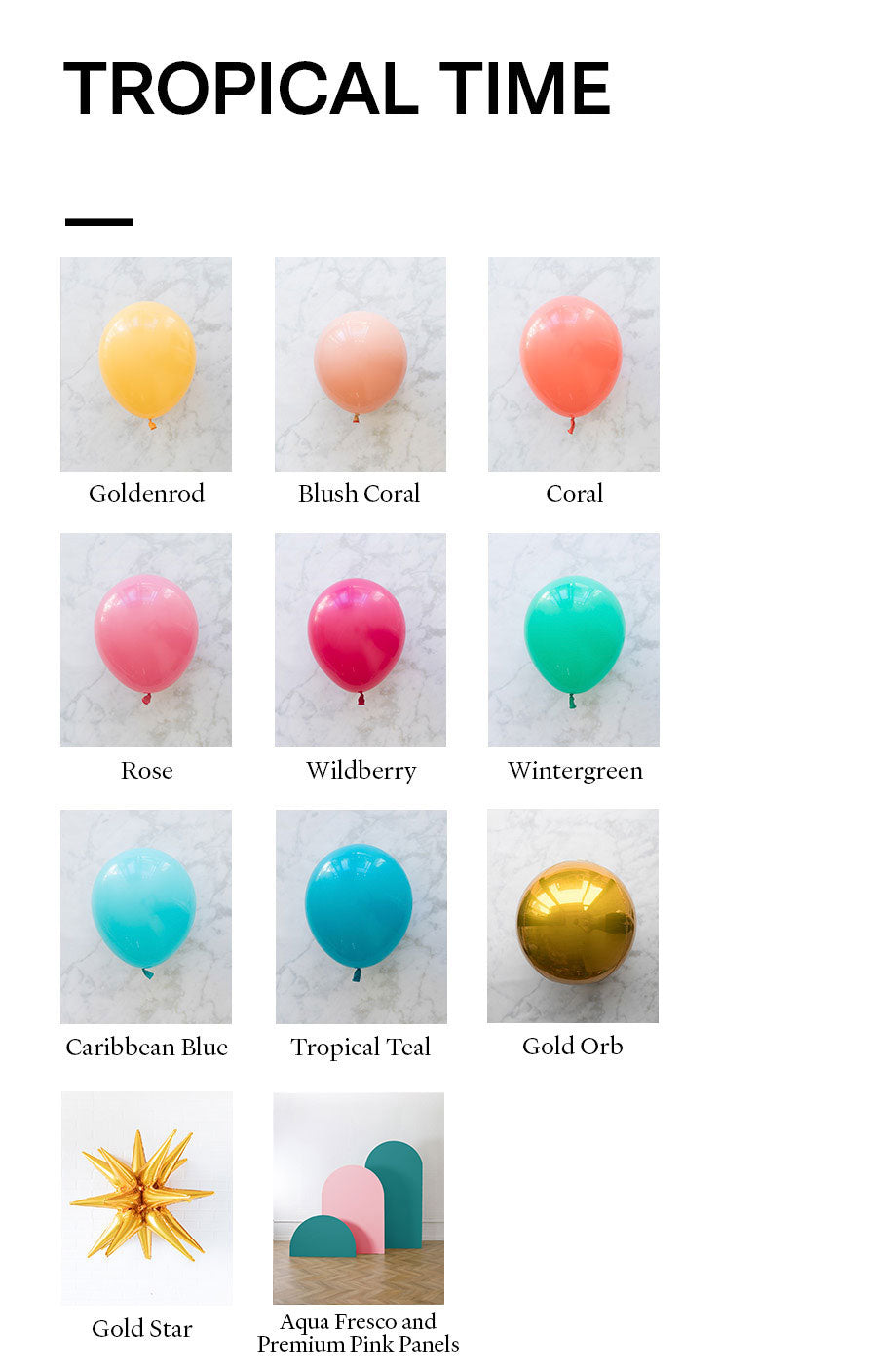 Balloon - goldenrod, blush coral, coral, rose, wildberry, wintergreen, caribbean blue, tropical teal