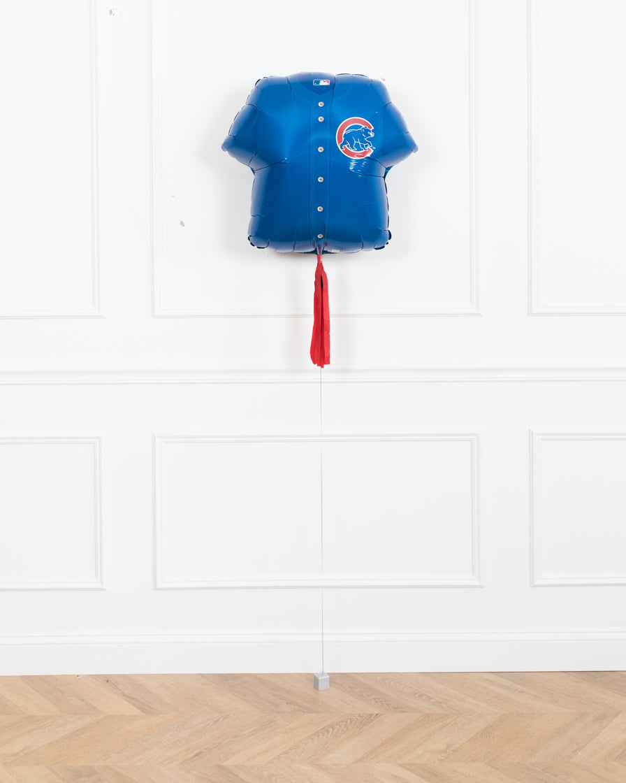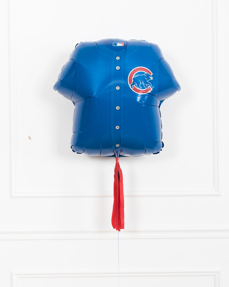 Make your kids birthday extra fun with our Chicago Cubs Jersey balloon with skirt! Add this to your baseball themed birthday for extra decoration around your sweets table backdrop.