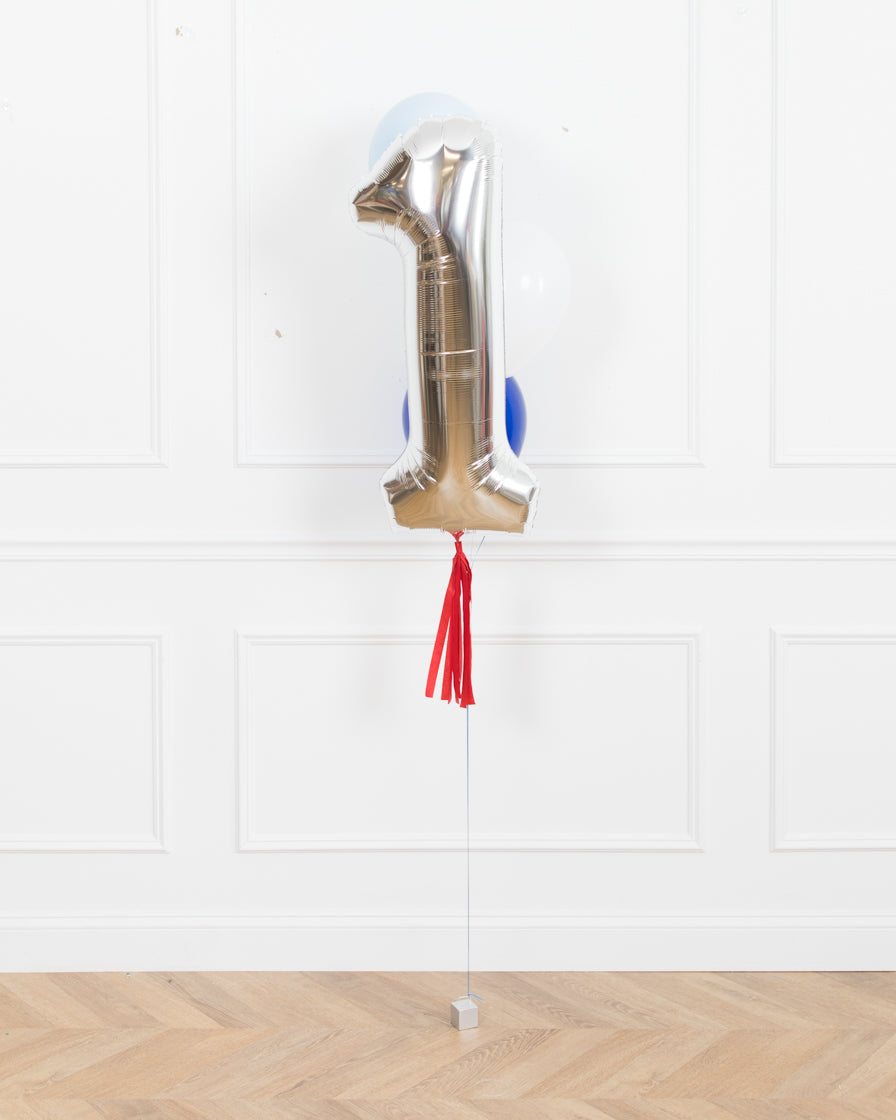 Everyone's favorite, the 34in foil number and skirt turned into a bouquet. This includes a silver number balloon and bright helium filled balloons for an effortless look. Great as decor or as photo prop.