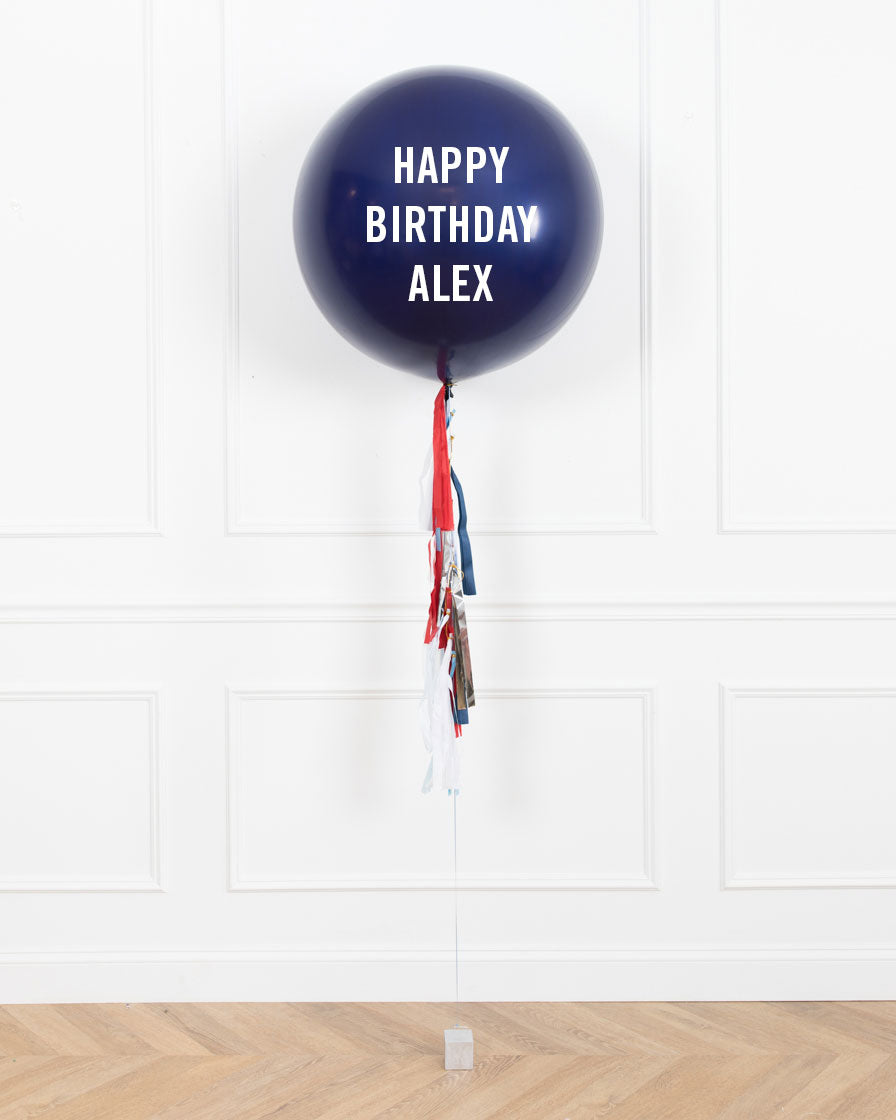 Our baseball themed giant balloon is a picture perfect balloon decoration. This helium-filled bright navy giant 36in balloon with matching tassel garland is an easy way to decorate for a 1st birthday.