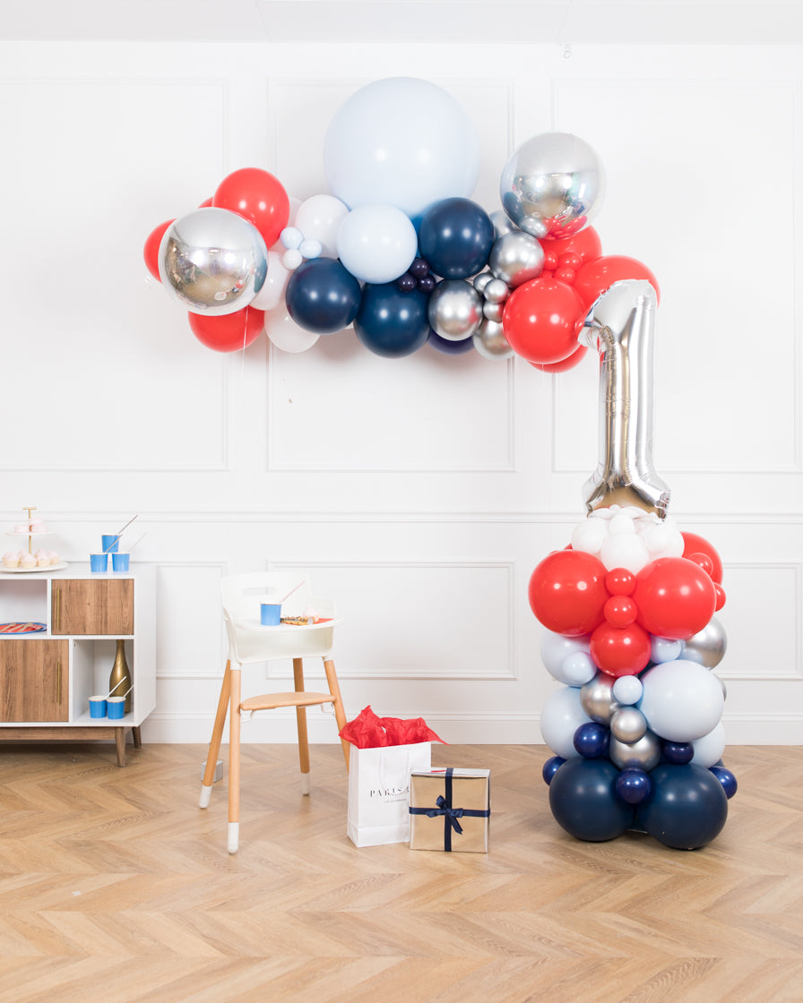 Create the ultimate 1st birthday with this adorable set! Dress up any space with our 6ft floating balloon arch, and number 1 balloon column.