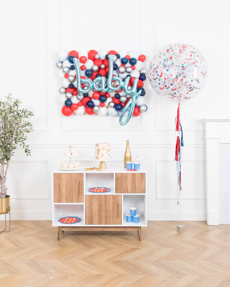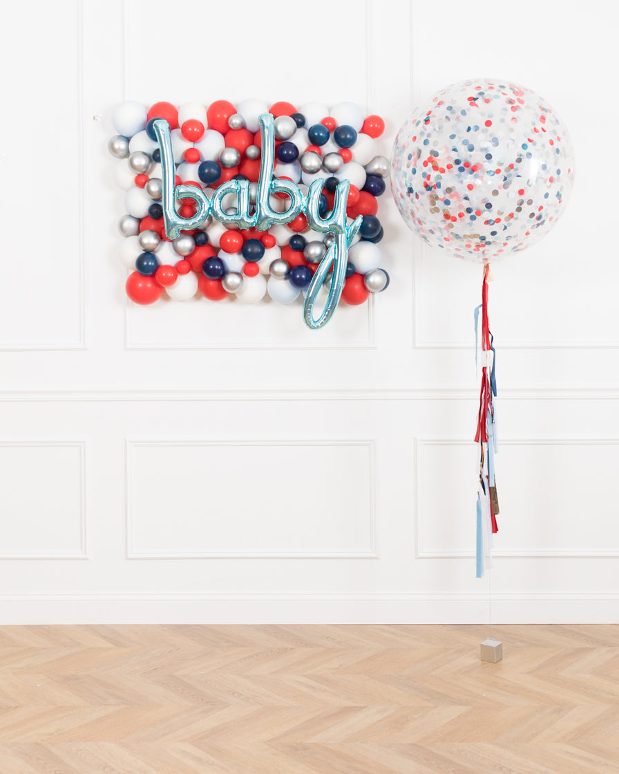 Make a beautiful statement for your baby shower with this stunning set. This includes a bright balloon backdrop and confetti balloon to make a celebration extra special.