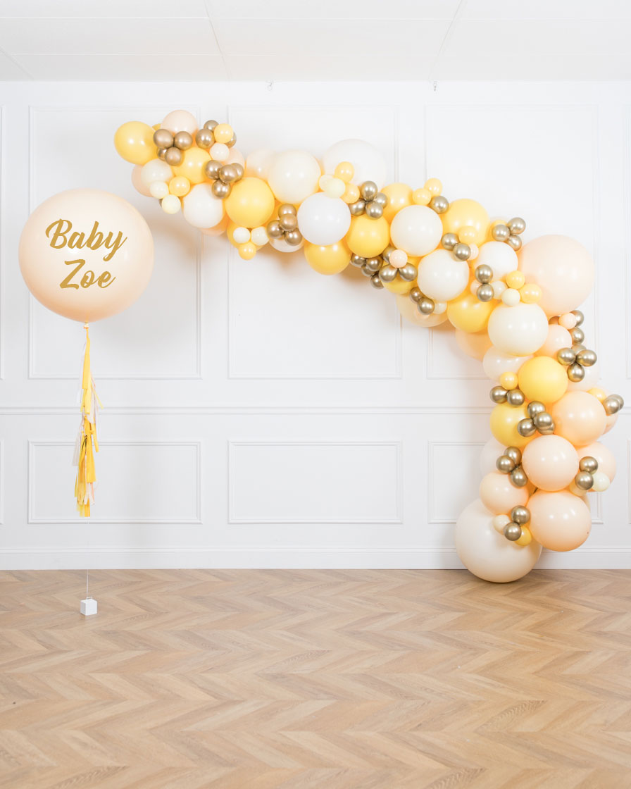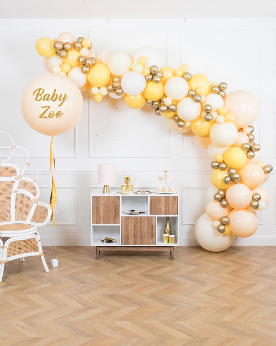 Bring your party together with this adorable and easy shower decor package. Quickly transport your space with this set includes a 12ft balloon garland and a giant balloon with tassel.
