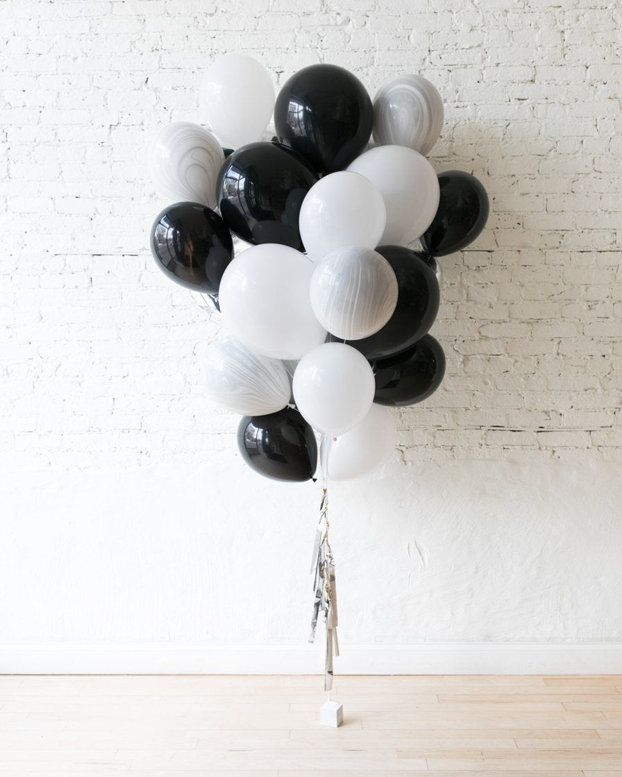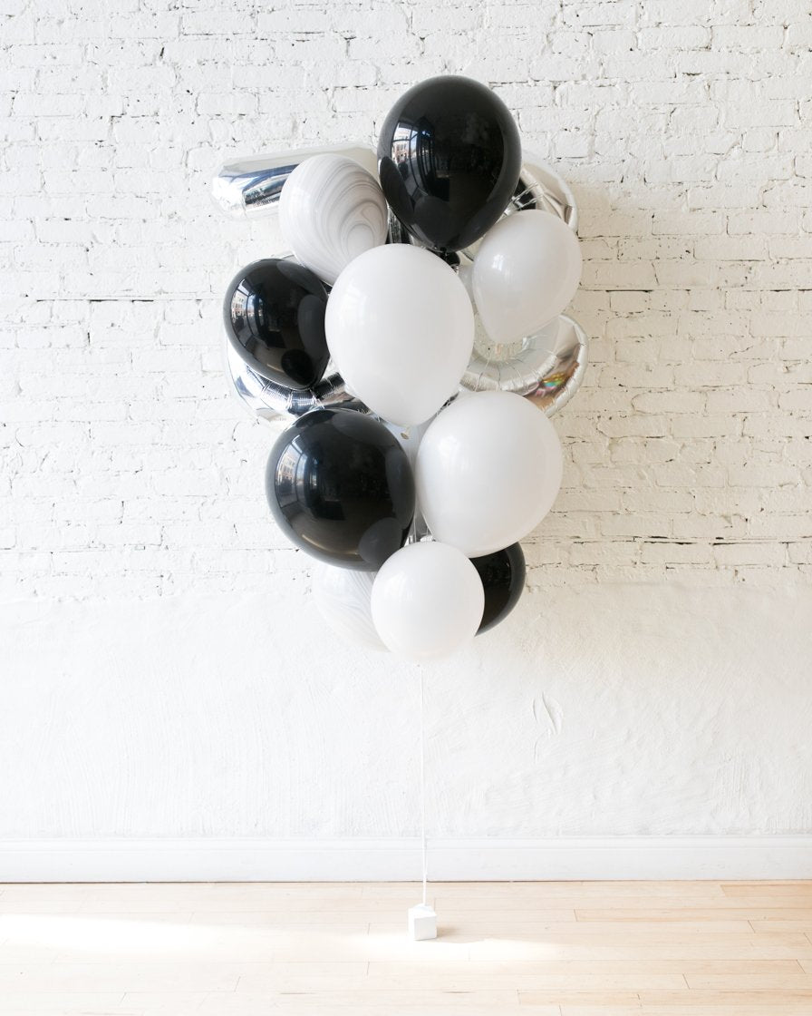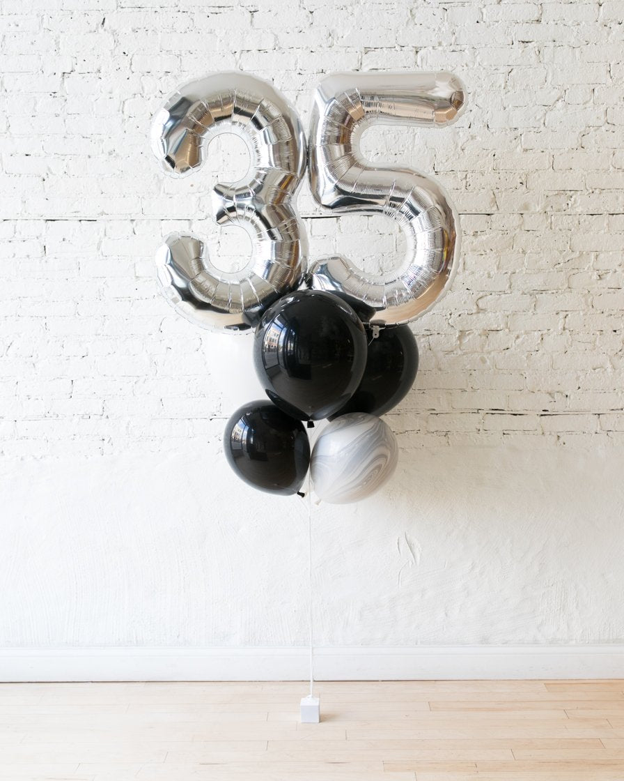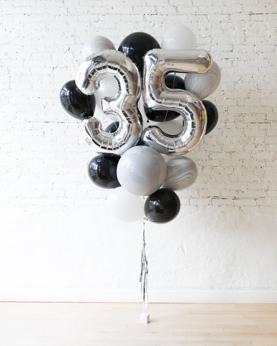 GIFT-Black and White Marble Palette Foil Number and Latex Balloon Bouquet