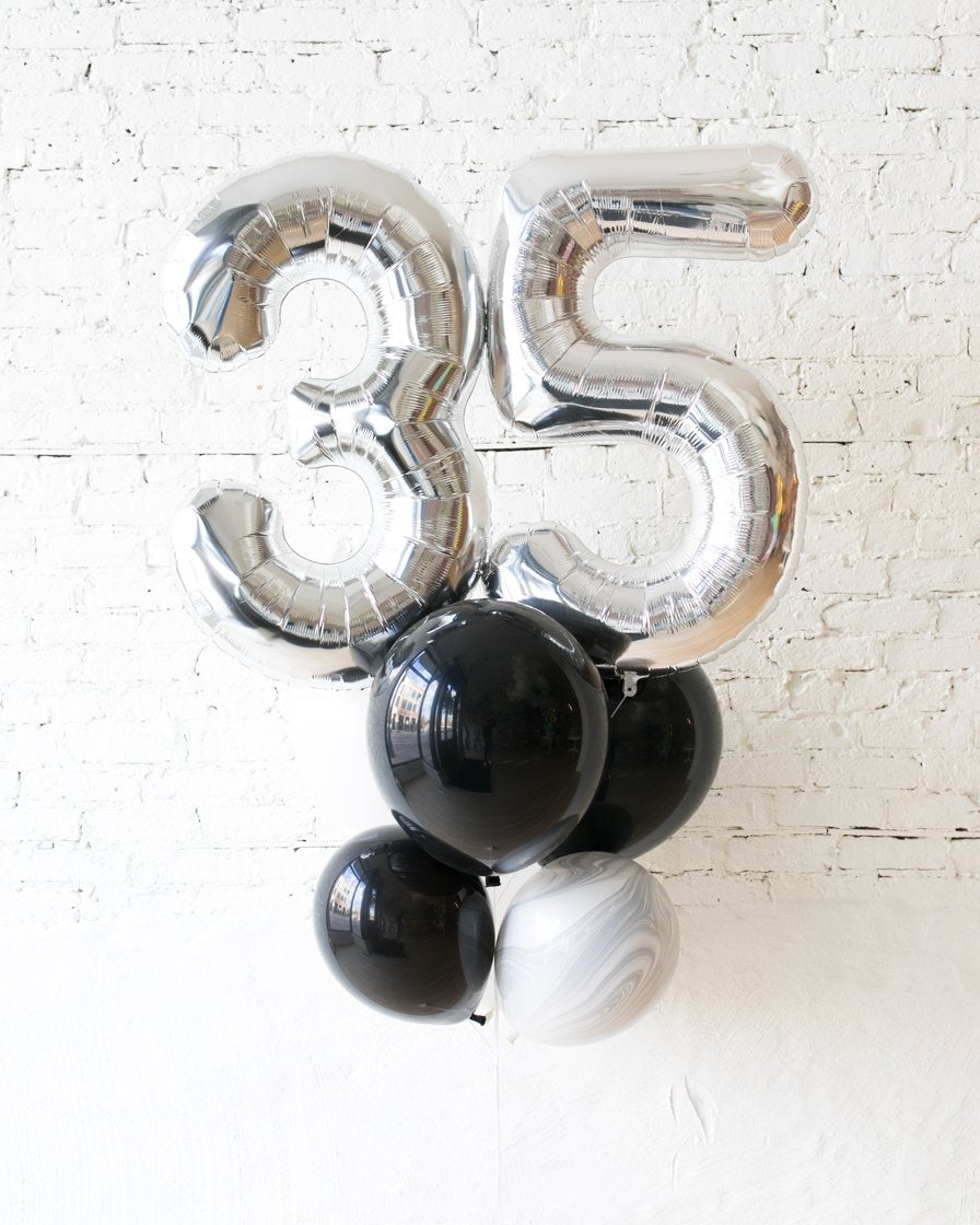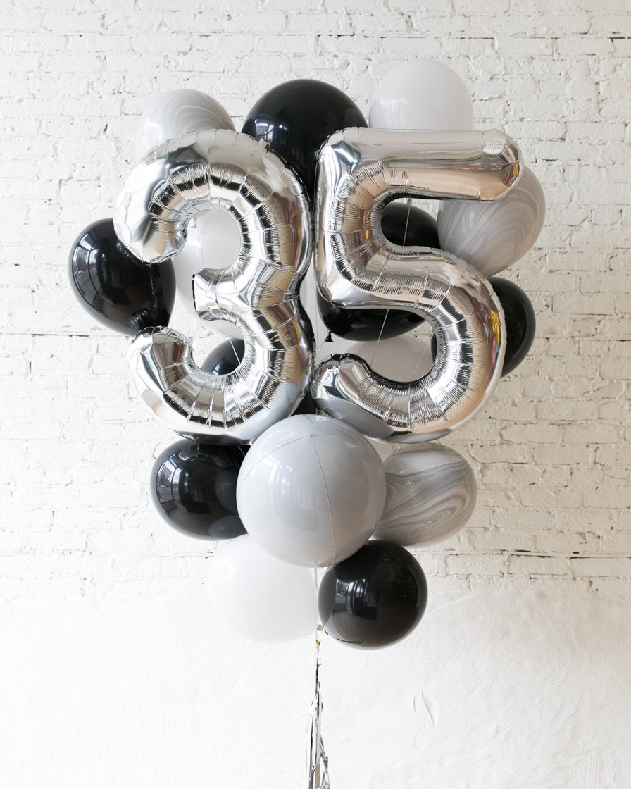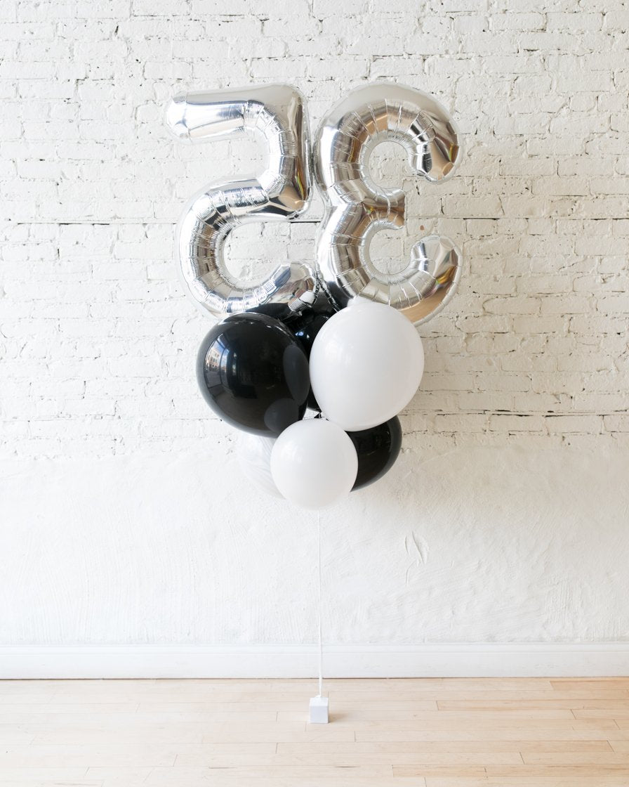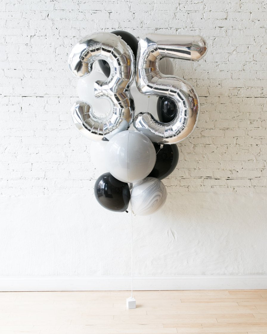 GIFT-Black and White Marble Palette Foil Number and Latex Balloon Bouquet