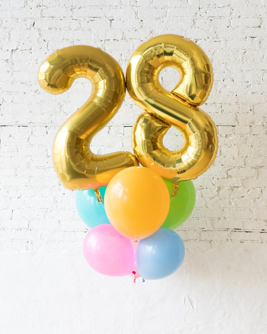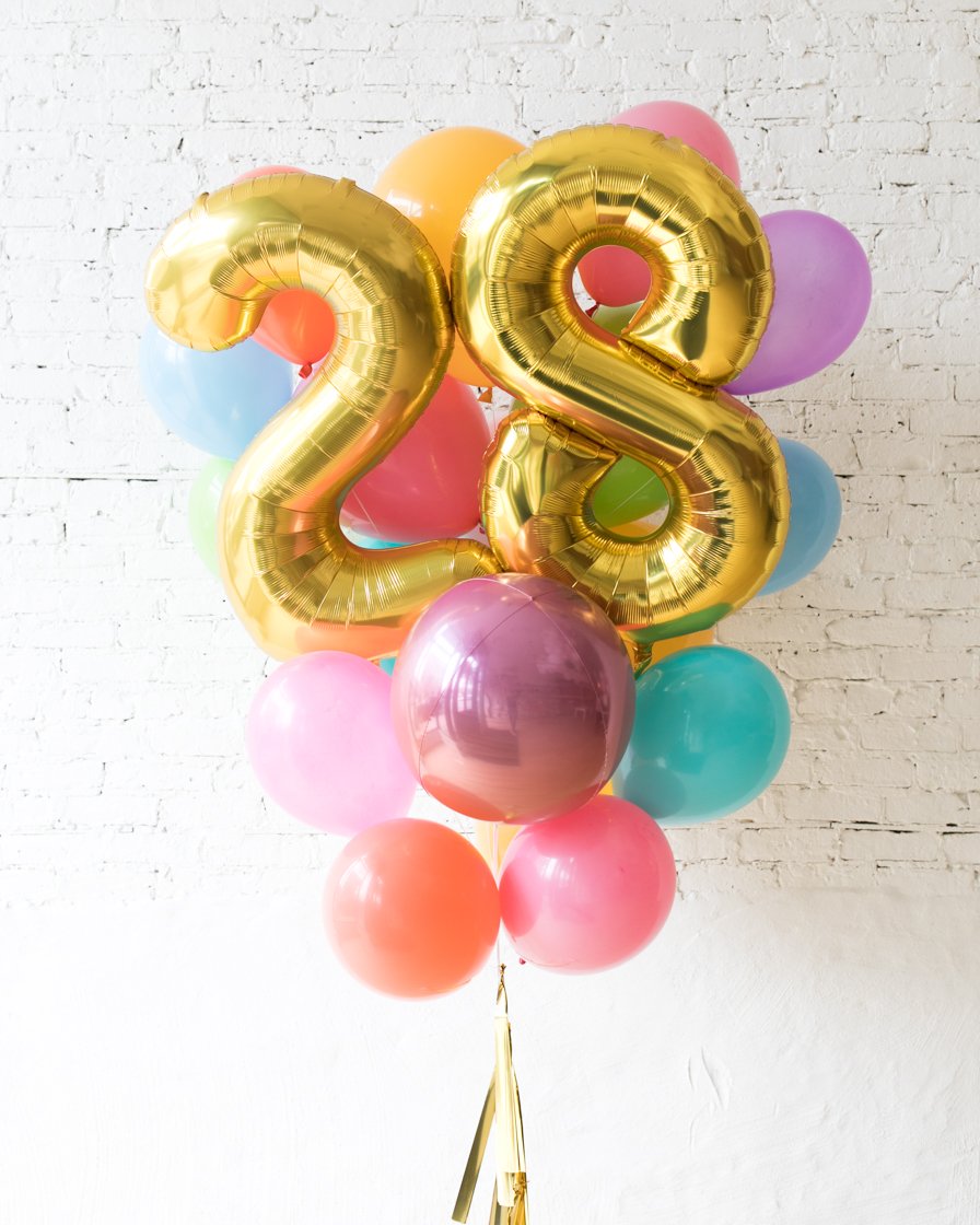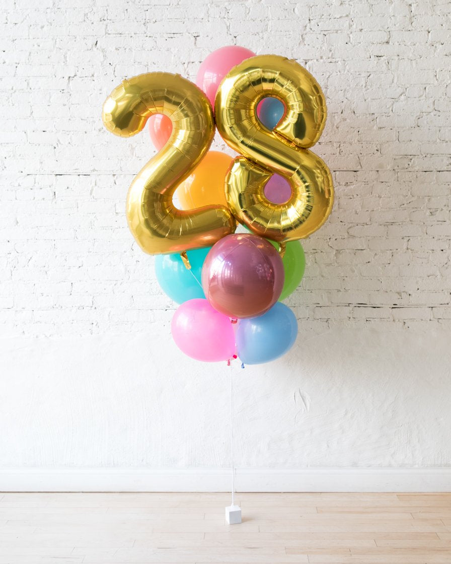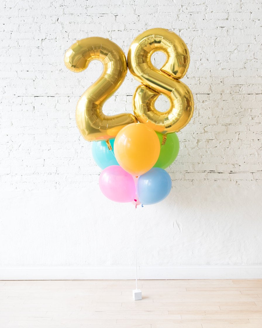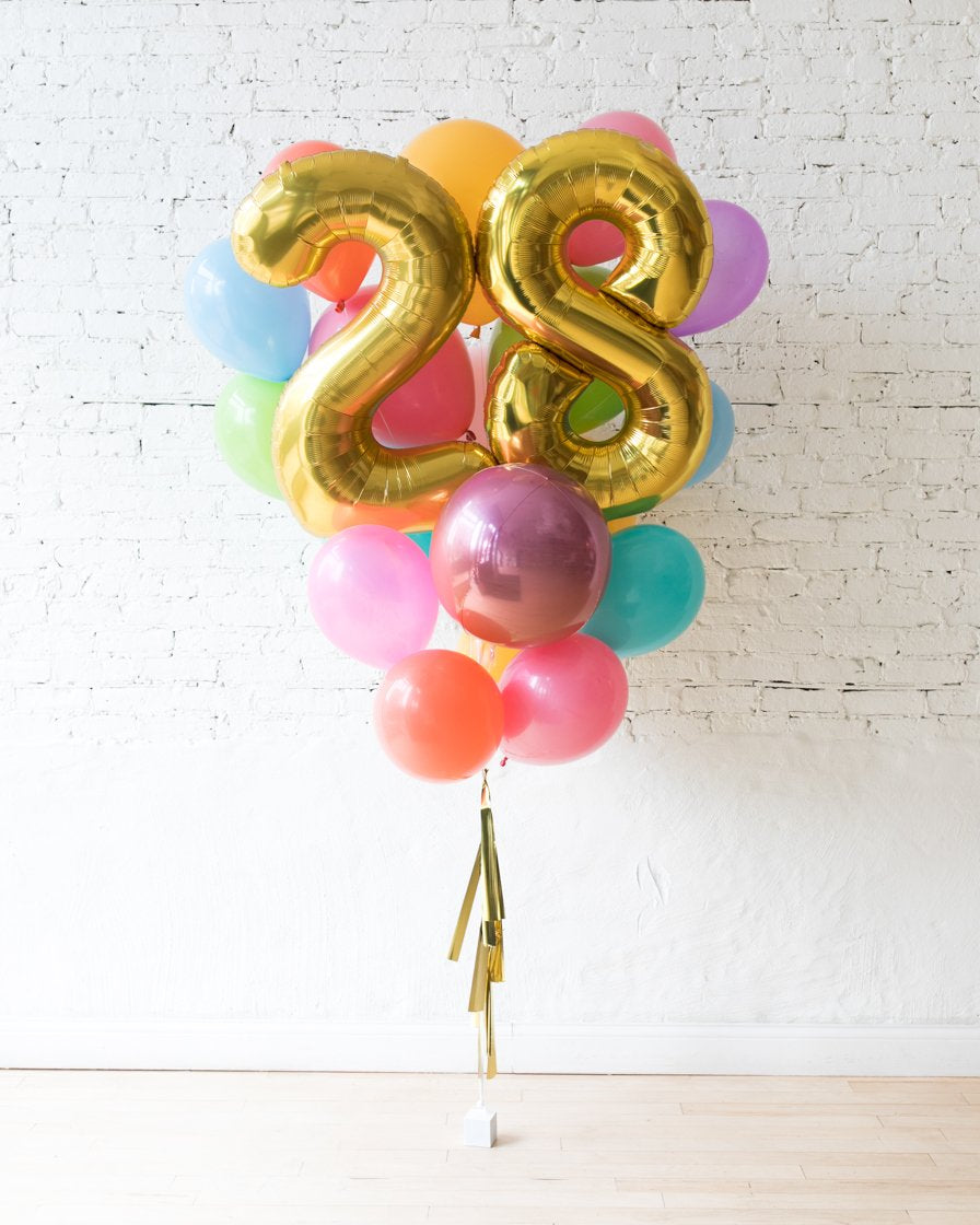 GIFT-Bright Palette Foil Number and Latex Balloon Bouquet