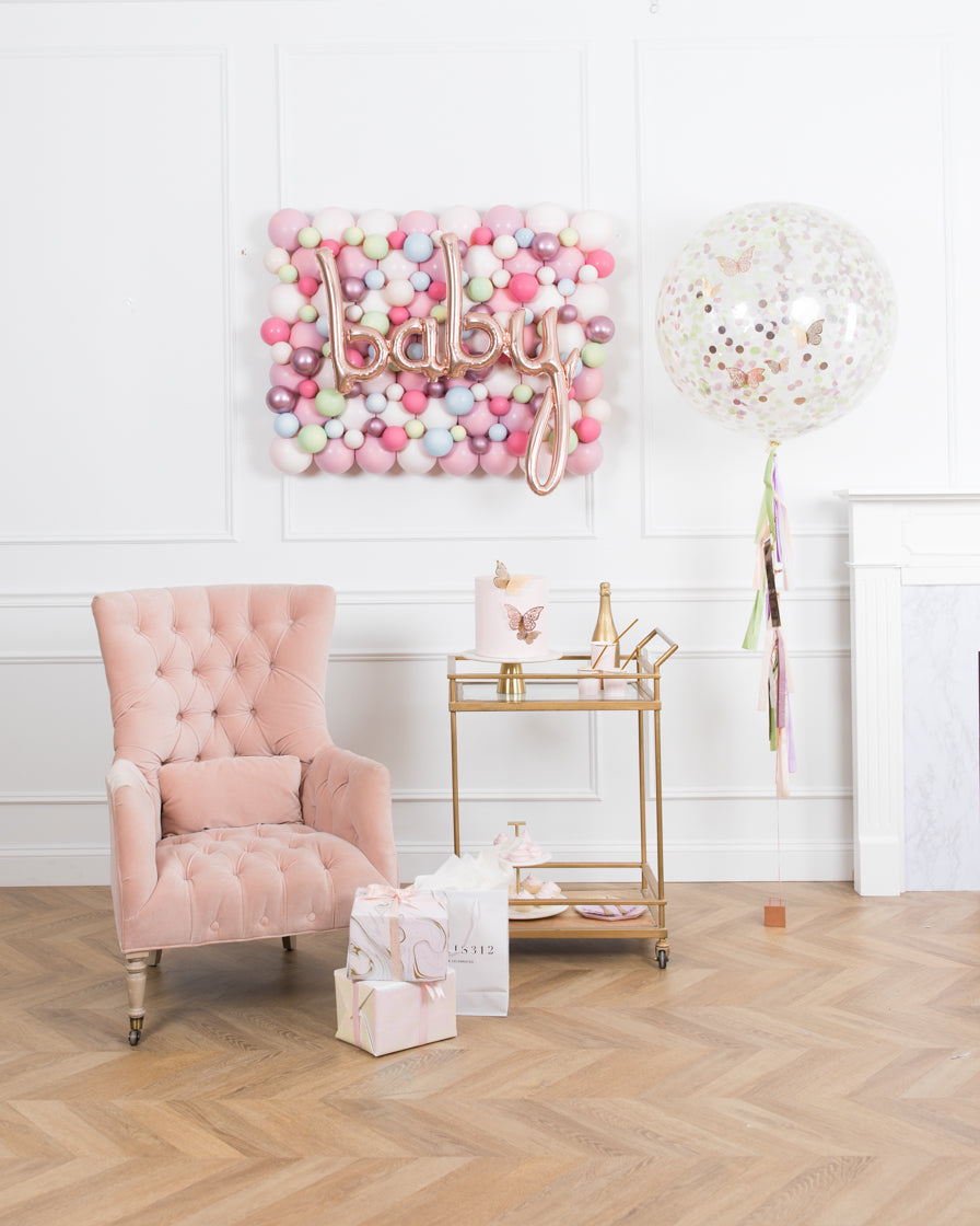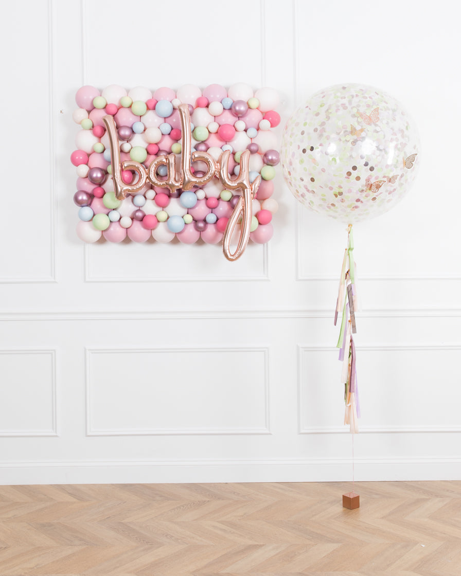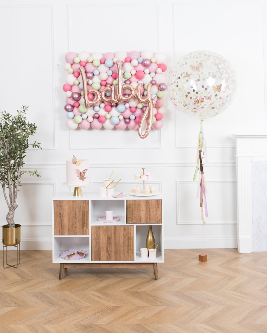 Make a beautiful statement for your baby shower with this stunning set. Designed in a butterfly garden inspired palette, this party mix includes a latex balloon backdrop and confetti giant balloon to make a celebration extra special.