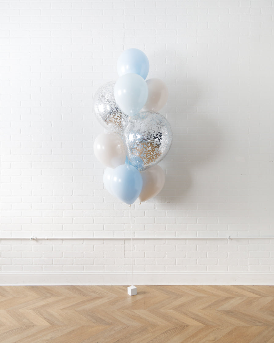 Bring an elegance and instant glam to your shower with our signature confetti bouquet. This helium-filled balloon bouquet includes balloons in soft shades and matching confetti to add fun to any sweets table or backdrop