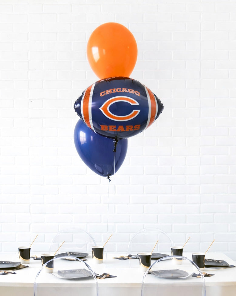Add instant team spirit to your celebration with this Chicago Bears balloon centerpiece. Featuring a Bears logo foil balloon paired with navy and orange latex balloons, it arrives fully assembled, helium-filled, and anchored with a discreet weight, no setup required. Perfect for game day tables, birthday parties, tailgates, and sports-themed events.